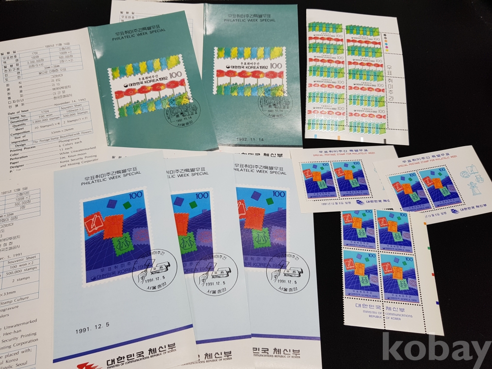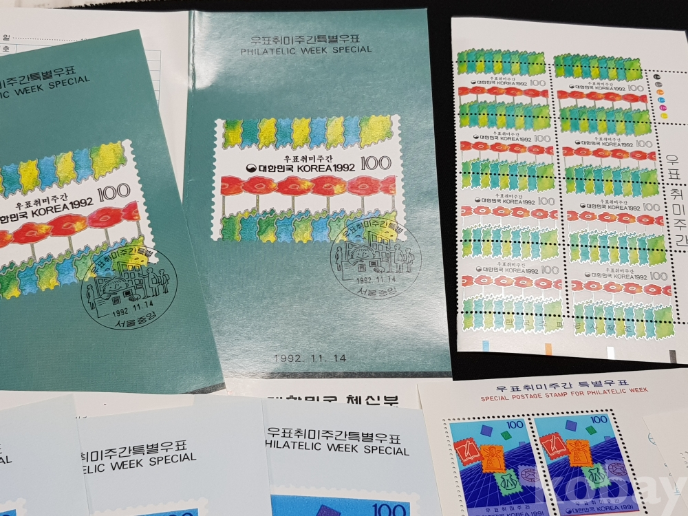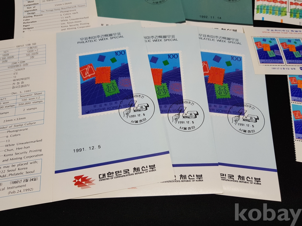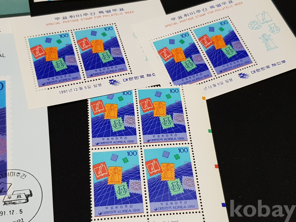 - 1990년대 우표취미주간 특별우표 시트, 명판, 안내카드 등 모음