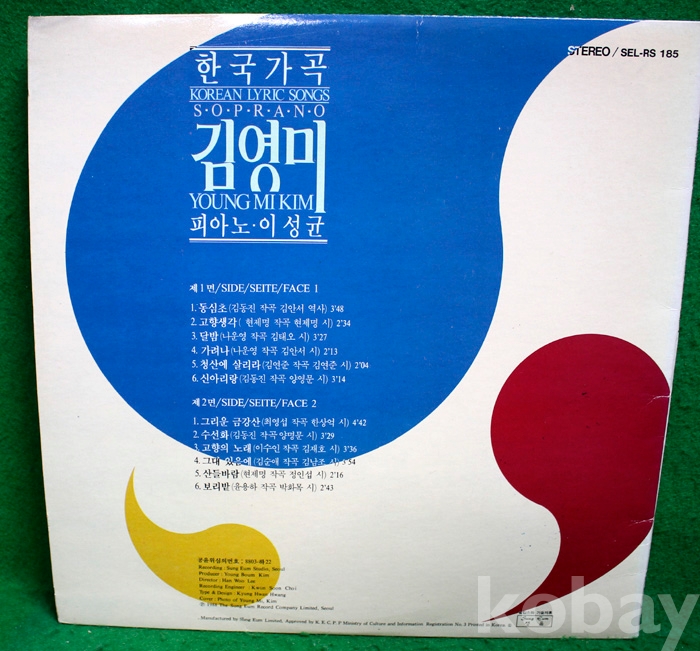 (LP) 소프라노 김영미 - 동심초 / 고향생각 / 그리운 금강산...