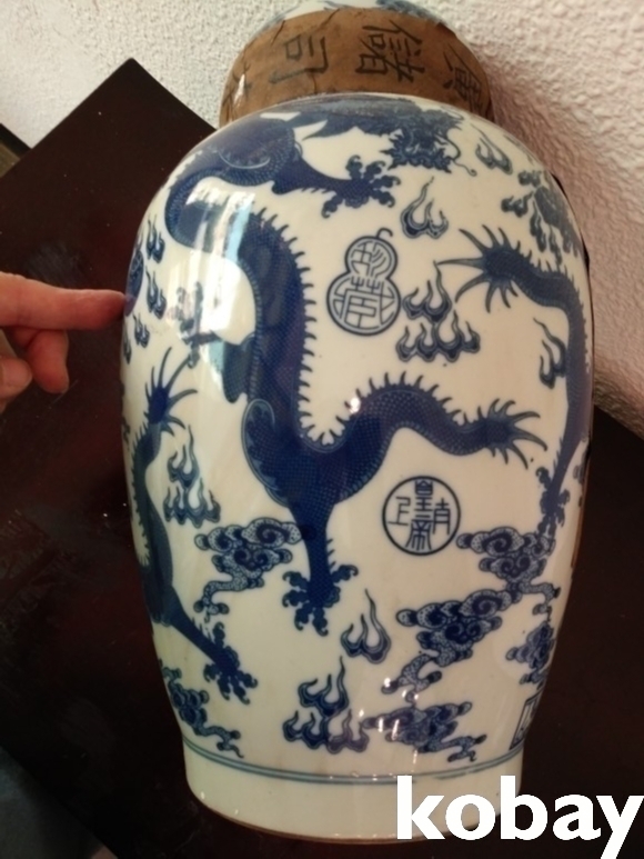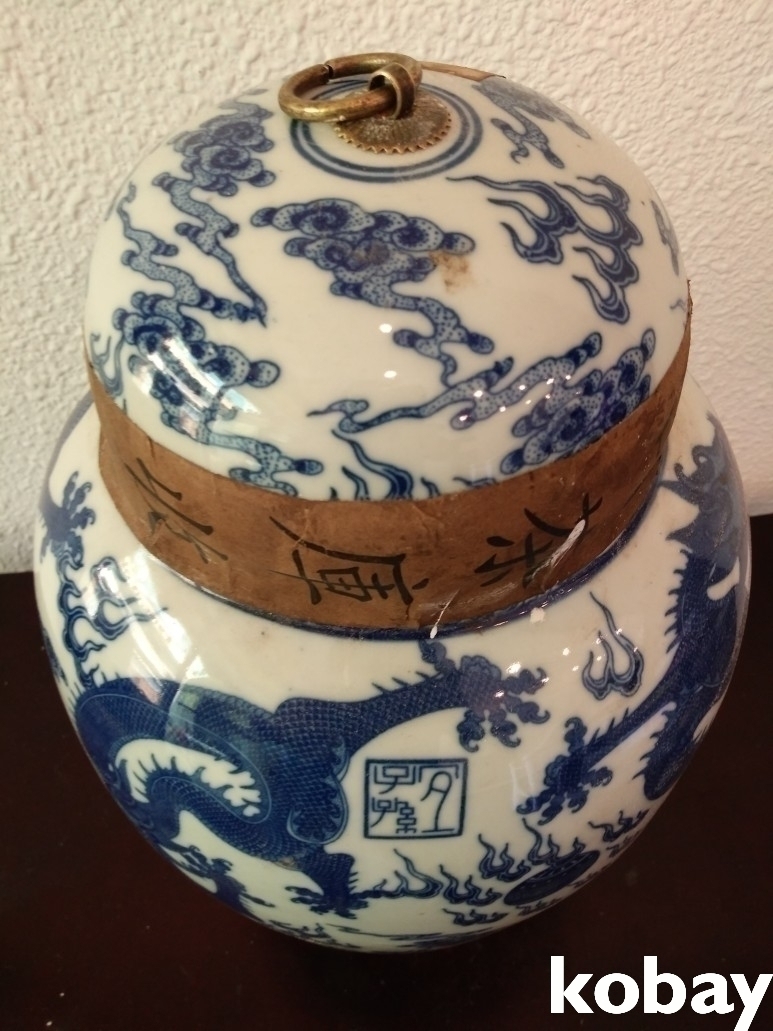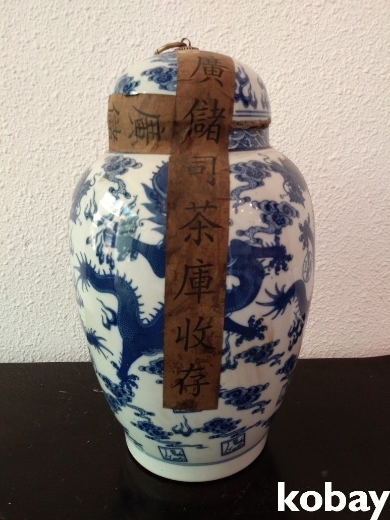 용 문양이 있는 보이차 도자기 입니다.