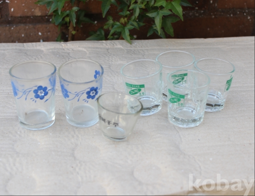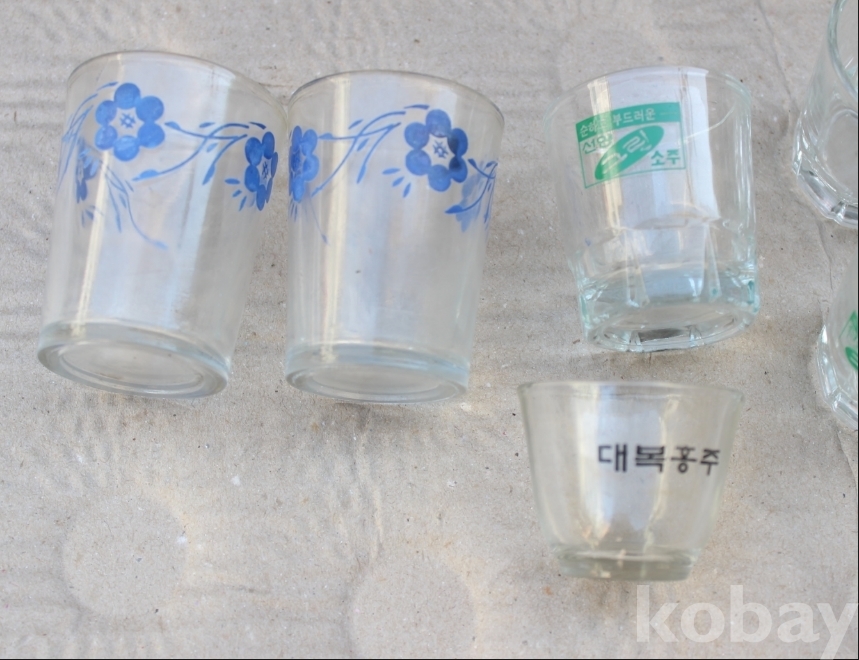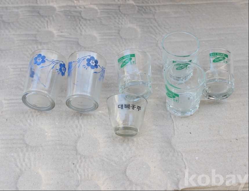 1980년 전후에 나온 그린소주잔 등 3종류
