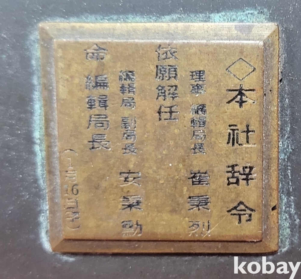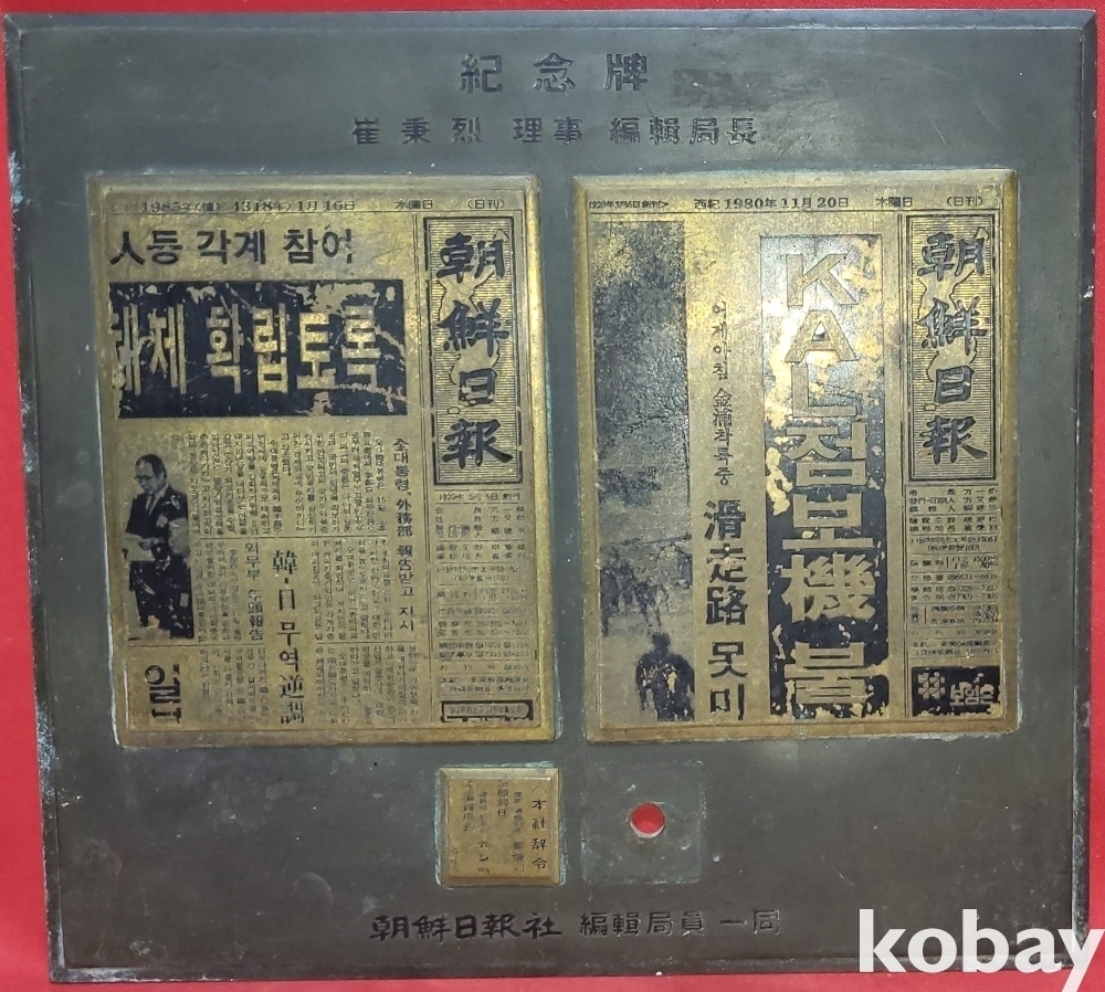 조선일보 최병렬 편집국장 기념패로 근 현대사 자료입니다