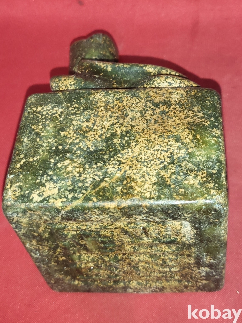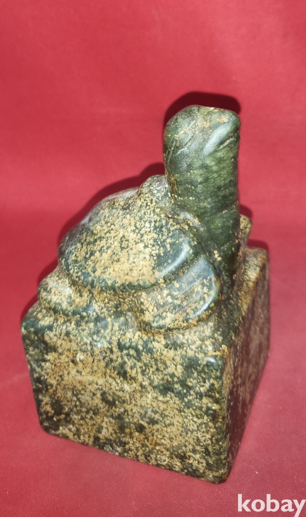 청옥(靑玉) 으로 만든 거북문양 사각 큰 도장 조각품입니다,