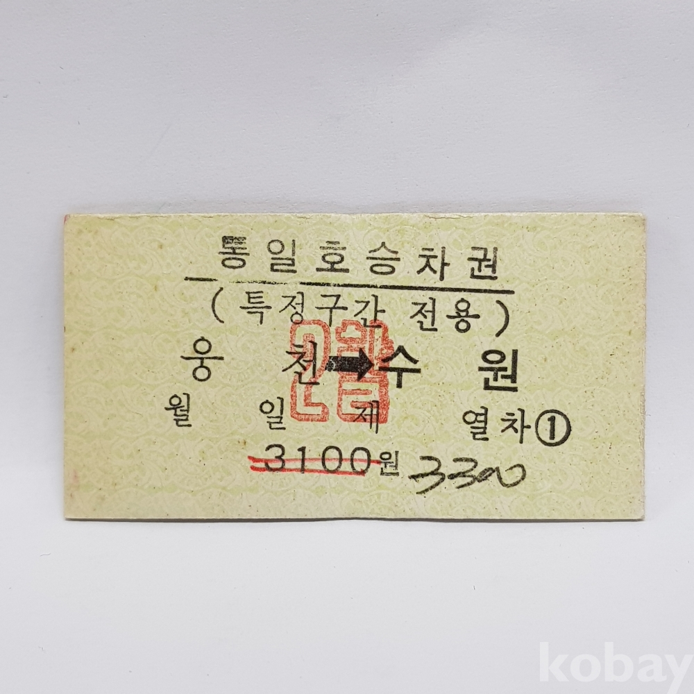 - " 웅천 ▶ 수원 " 미사용 통일호 승차권(특정구간전용) 2할 3300원