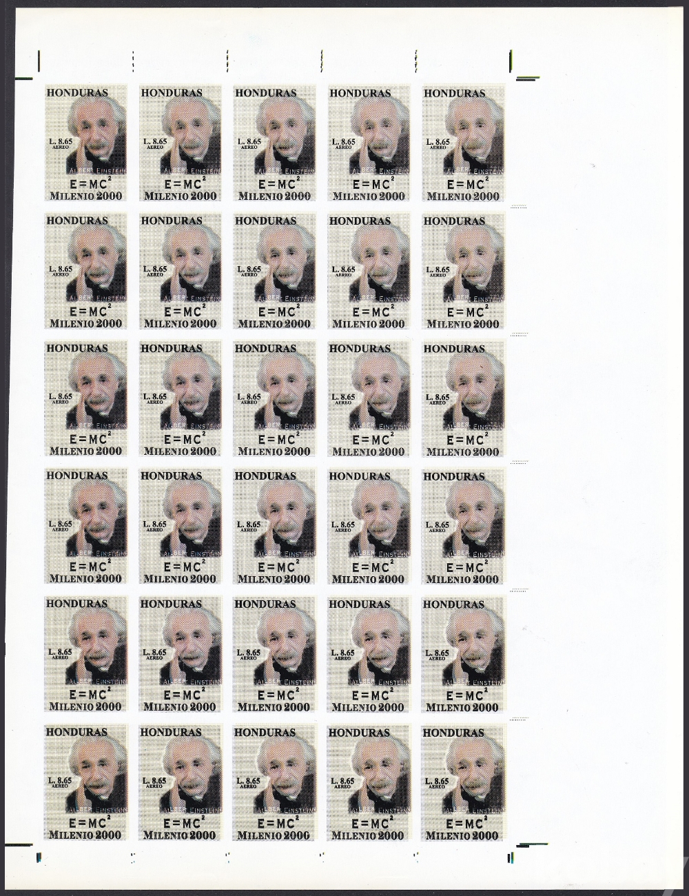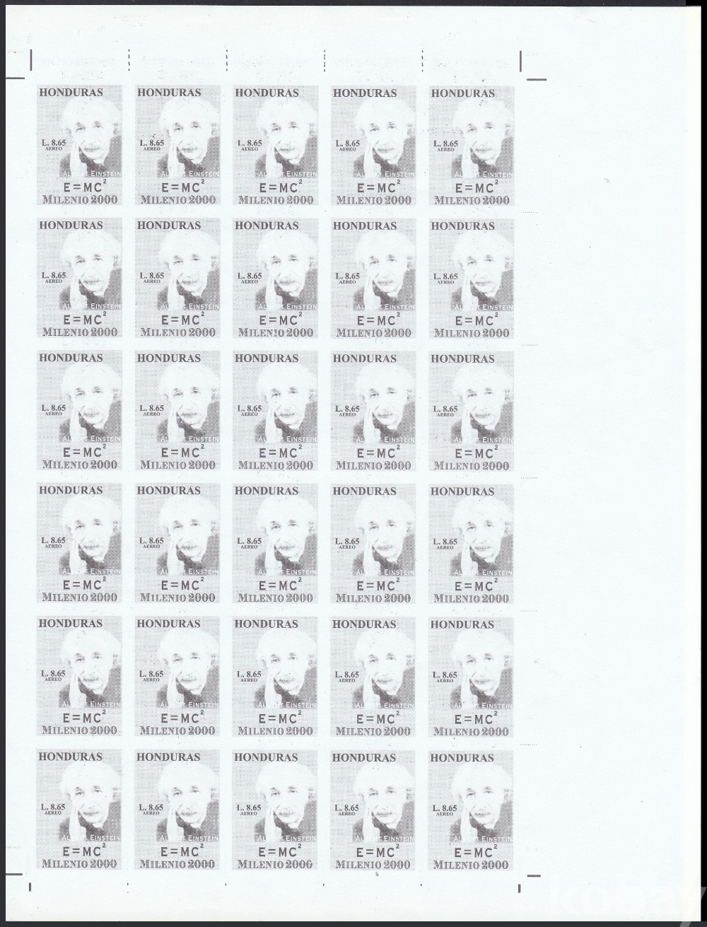 (하늘천) 온두라스 ScC1058 밀레니엄, 알베르트 아인슈타인 (1879-1955), 노벨 물리학상, 노벨상, 양면 인쇄 에러 프루프 B