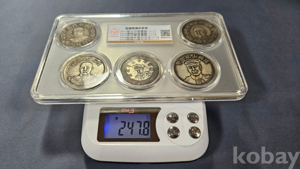 케이스 안에 들어있는 은색 인물주화 5점 입니다.