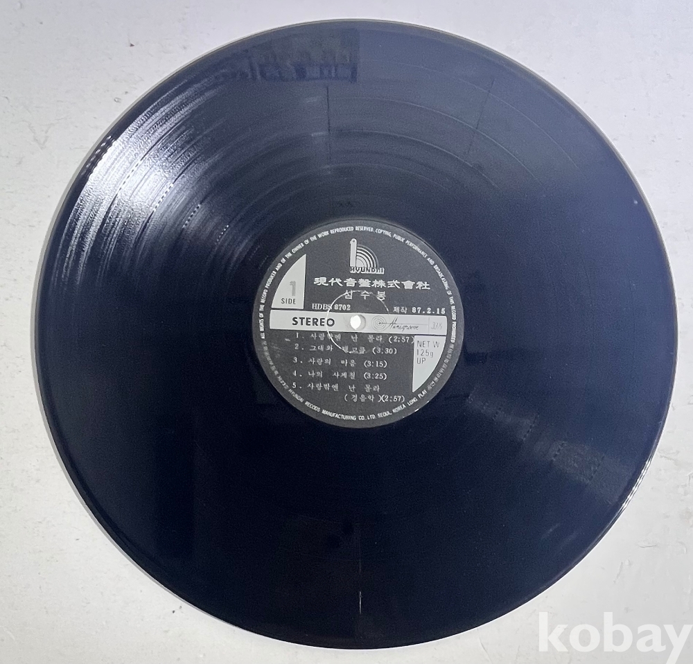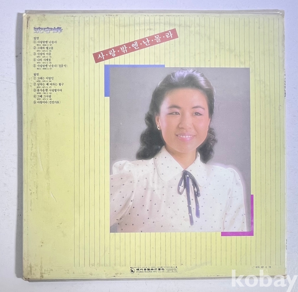 4. 상세 설명 설명이 필요 없는 심수봉 님의 베스트 음반입니다. 특히 이 음반은 전 국민의 애창곡인 '사랑밖엔 난 몰라'가 수록되어 있어 소장 가치가 매우 높습니다. '남자는 배 여자는 항구', '그때 그 사람' 등 심수봉 님의 전성기 히트곡을 한 장의 LP로 완벽하게 감상하실 수 있는 구성입니다.