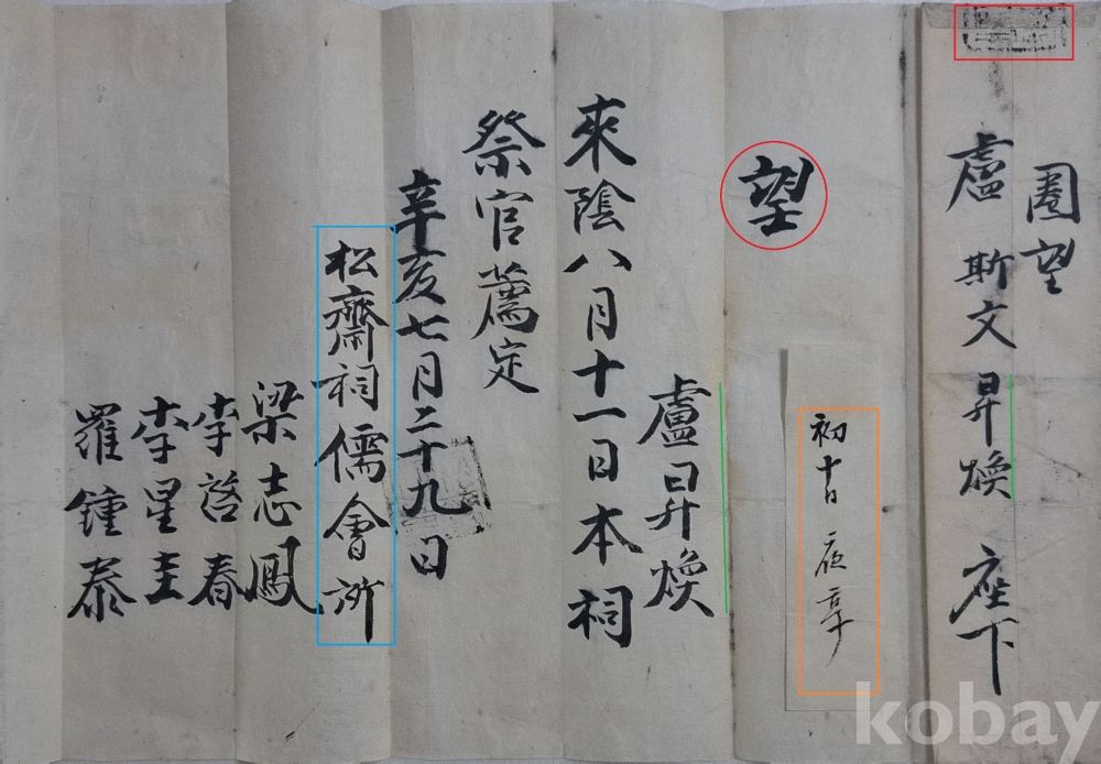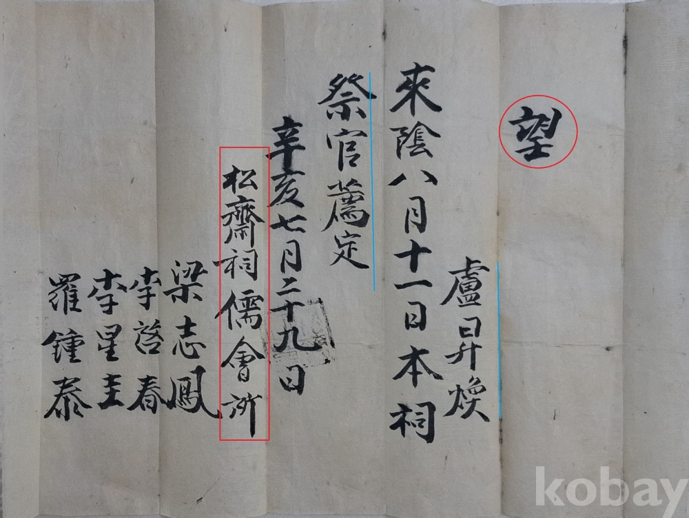 ◈ 송재사 유회소(松齋祠儒會所)에서 제관으로 임명된 노승환(盧昇煥)에게 보낸 문서.
