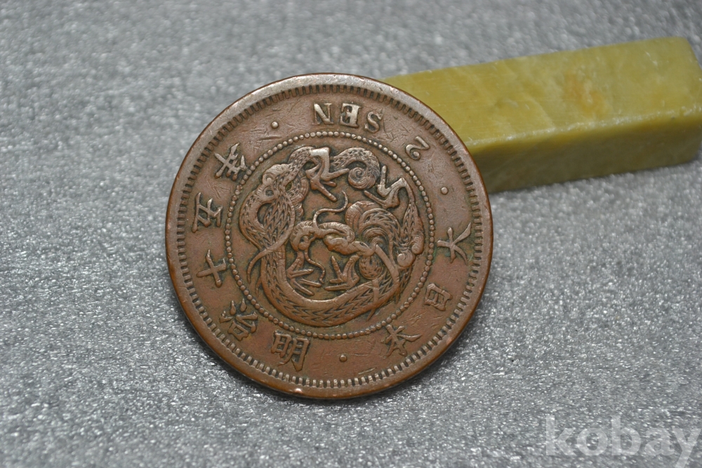 ㅡ> 100년 넘는 오래된 명치15년도(1882년도) 일본 대형 용 2전청동화 입니다.