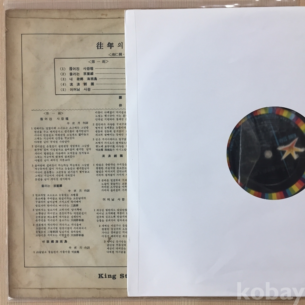 . 가요음반 대부분은 휘어짐이나 손상을 방지하기 위해 무지싱글자킷을 하나 더 사용하여 보관되었던 음반들입니다.