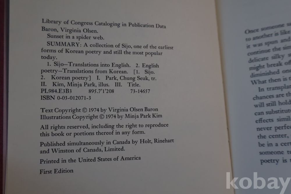 미국 발행 시조 임니다 1974년도 초판 이며 유명인의 시조를 영어로 번역한 귀한 명저 임니다 사진 참조 하세요
