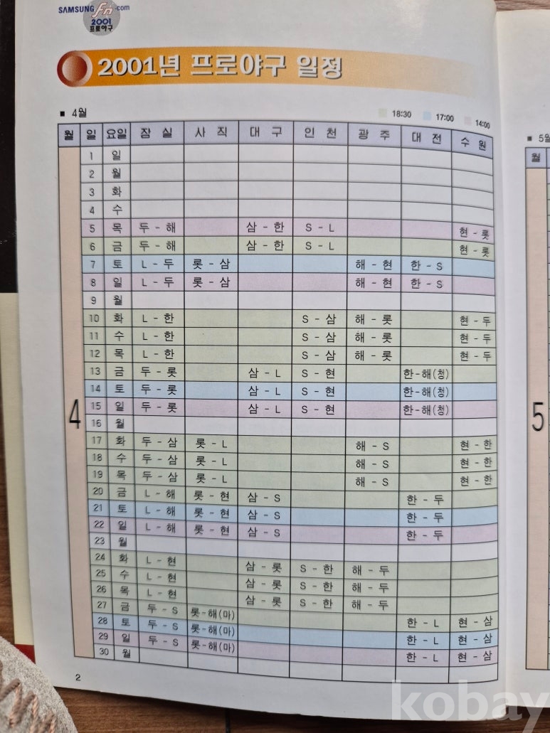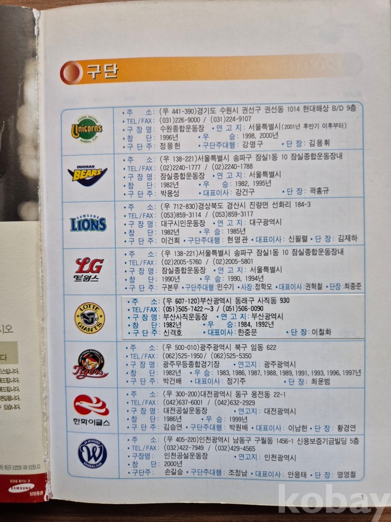 저자/발행: KBO 한국야구위원회 , 발행일: 2001.03.01 , 규격: 10.5 * 14.7cm , 페이지: 132 , 상태: 미사용 상태 최상급 , 정가: 비매품 , 수량: 1권 있음