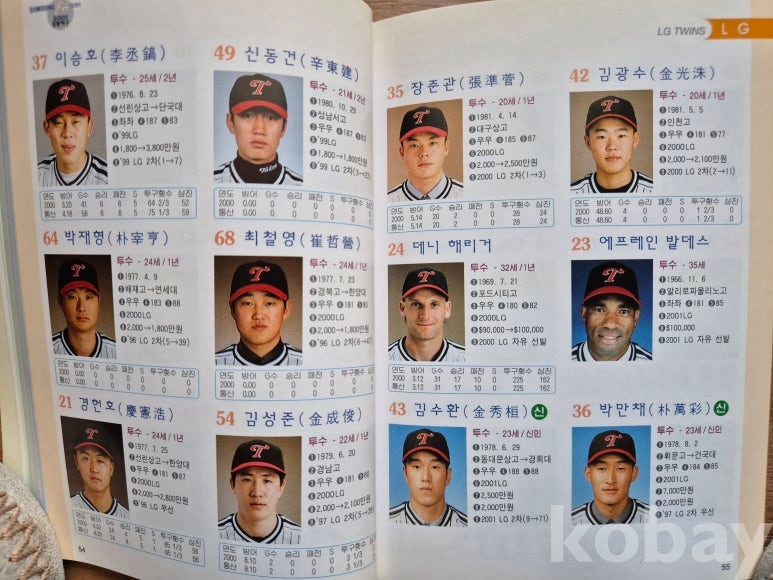 설명: 이 책의 OFFICIAL GUIDE BOOK 오피셜 가이드북 속에는 성명. 생년원일. 국적. 배번. 위치. 출신교. 투타. 신장/체중. 혈액형. 입단년도. 계약금. 년봉 등 등 기록 제공된 책입니다.