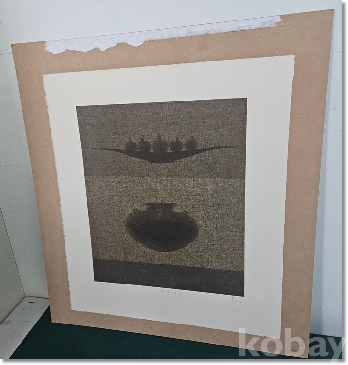 액자에서 떼어놓은 상태(합판에 부착)