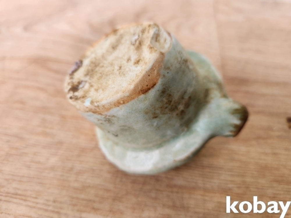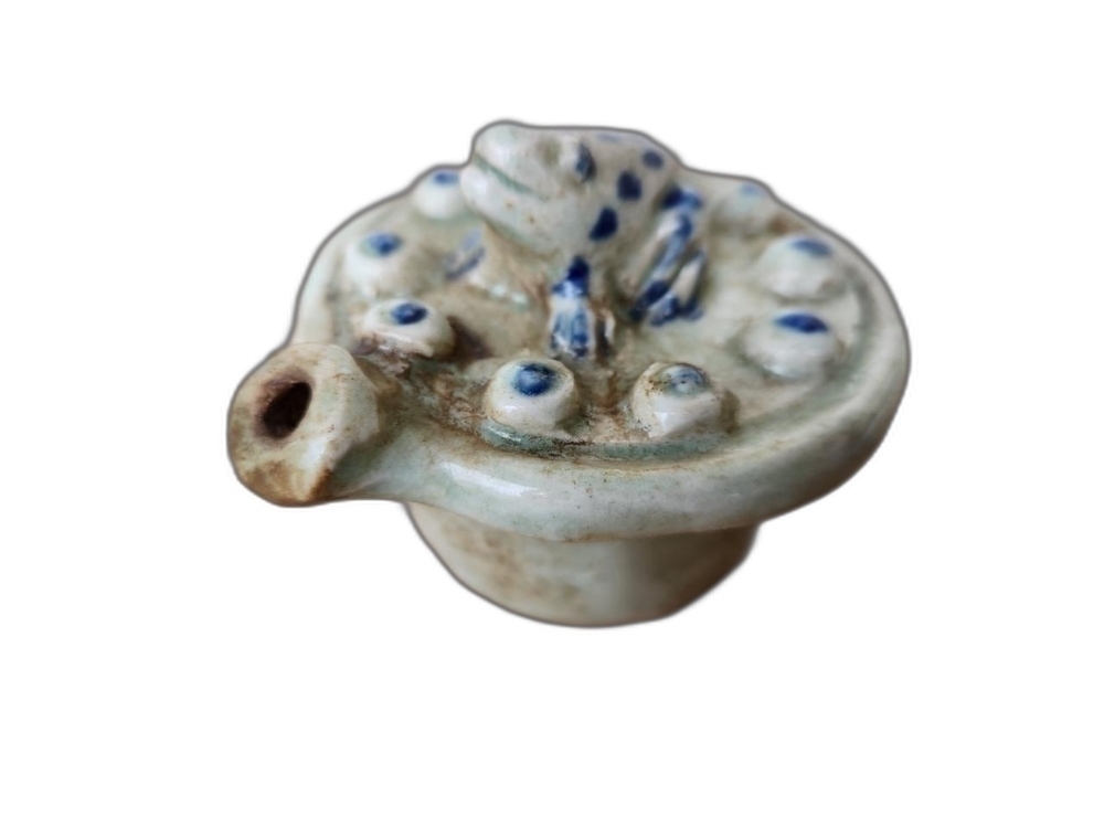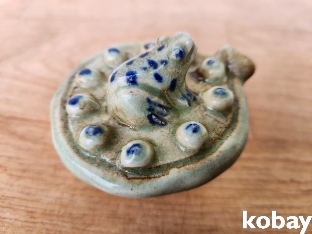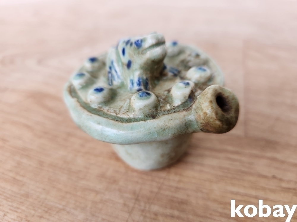 연밥 위에 개구리가 있는 연적 도자기 입니다.