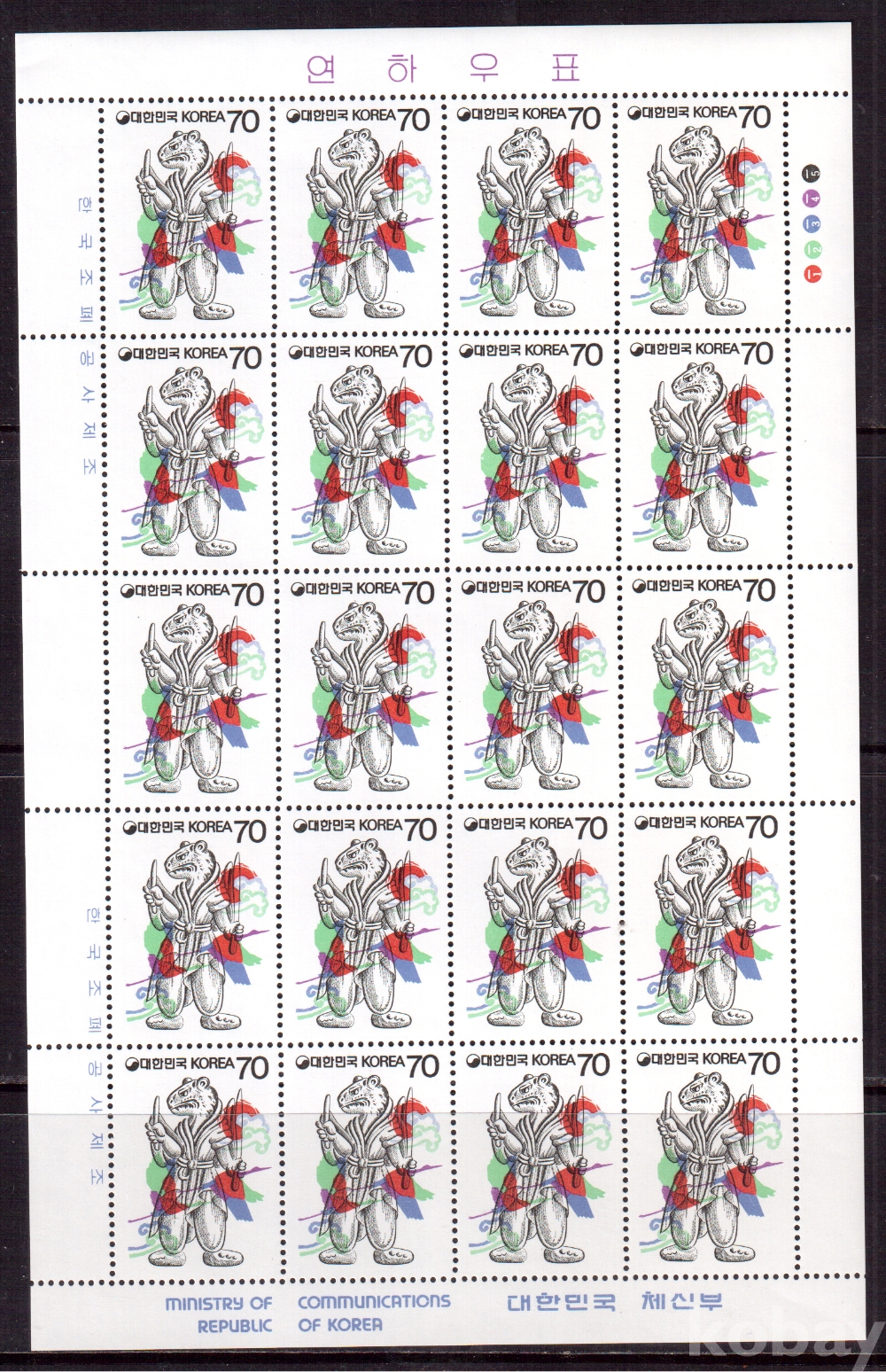 (한국전지) 1985.12.2 연하우표 sheet of 20 MNH
