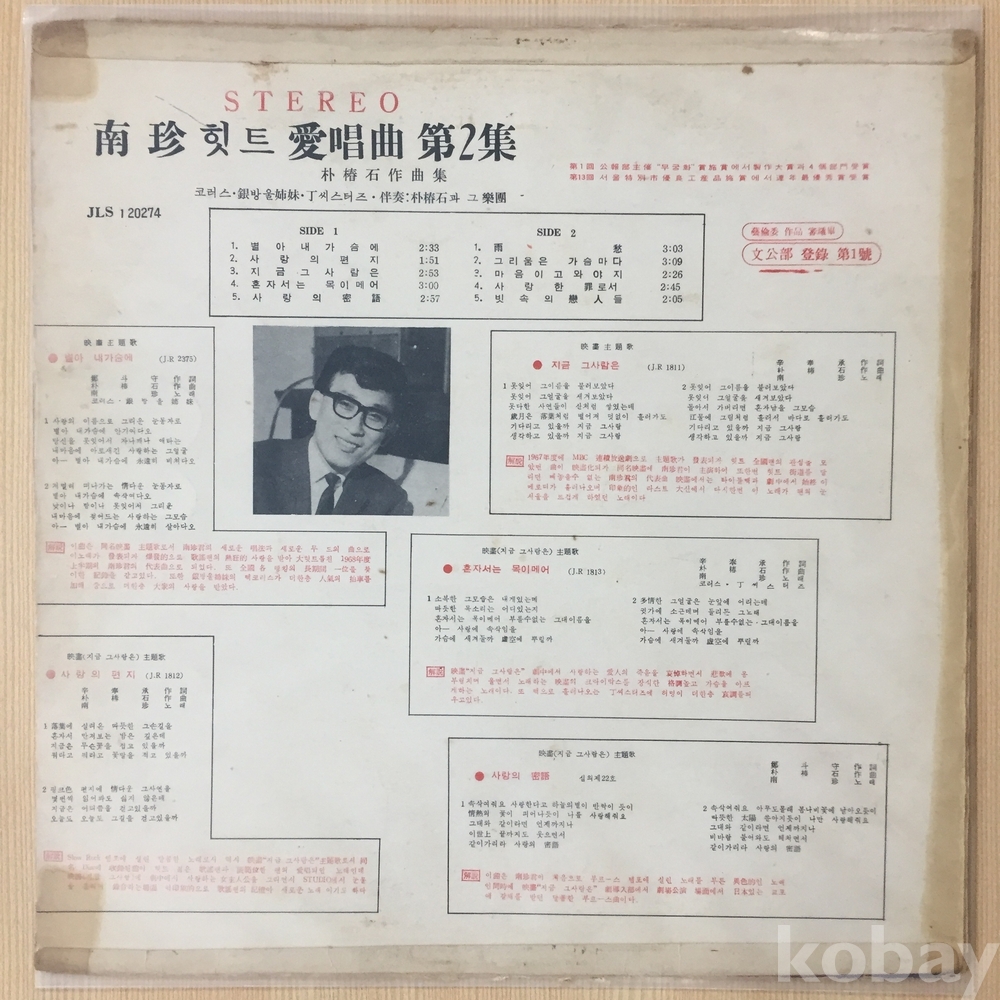 1. 별아 내가슴에 2. 사랑의 편지 3. 지금 그사람은 4. 혼자서는 목이 메어 5. 사랑의 밀어 | 1. 우수 2. 그리움은 가슴마다 3. 마음이 고와야지 4. 사랑한 죄로서 5. 빗속의 연인들 |