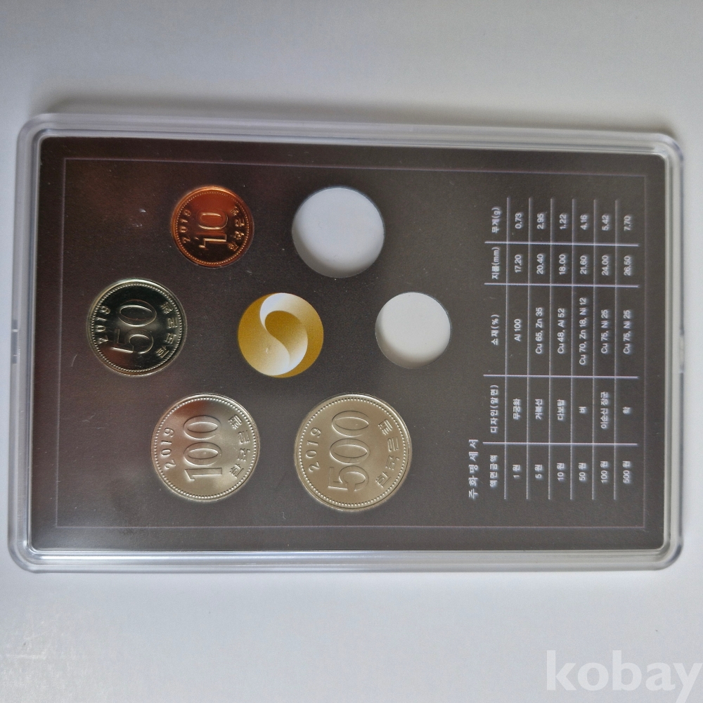 2019년 한국은행 민트 500원1개, 100원1개, 50원1개,10원1개 등4개일괄