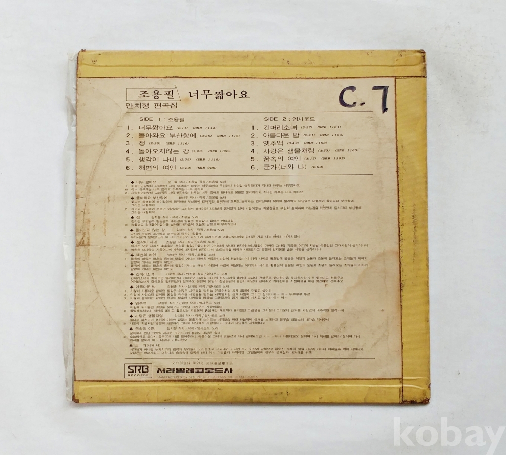 | 자켓상태 | VG : 주름, 접힘, 모서리 찢김 다수 | 음반상태 | EX : 재생에 영향 없는 가벼운 기스 존재 | 발매정보 | 알수없음 | 가사지여부 | 무 |