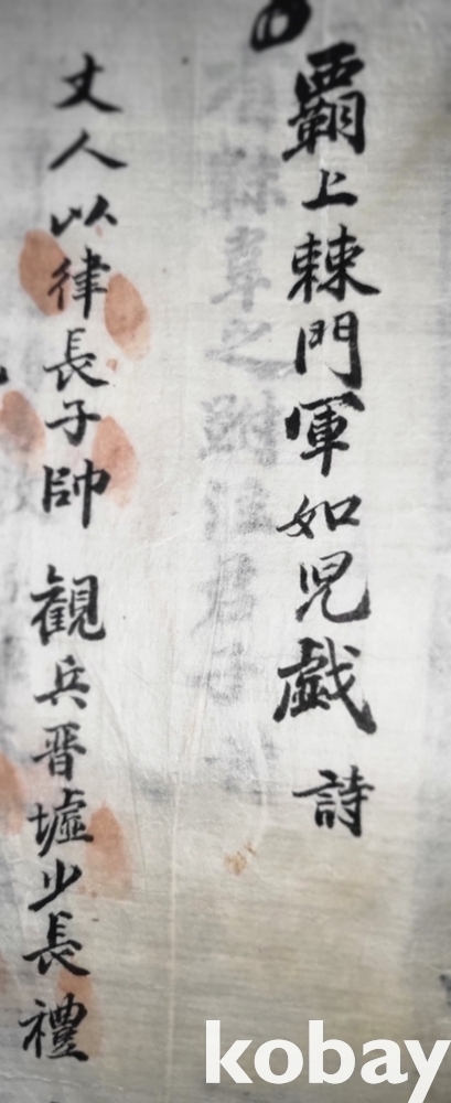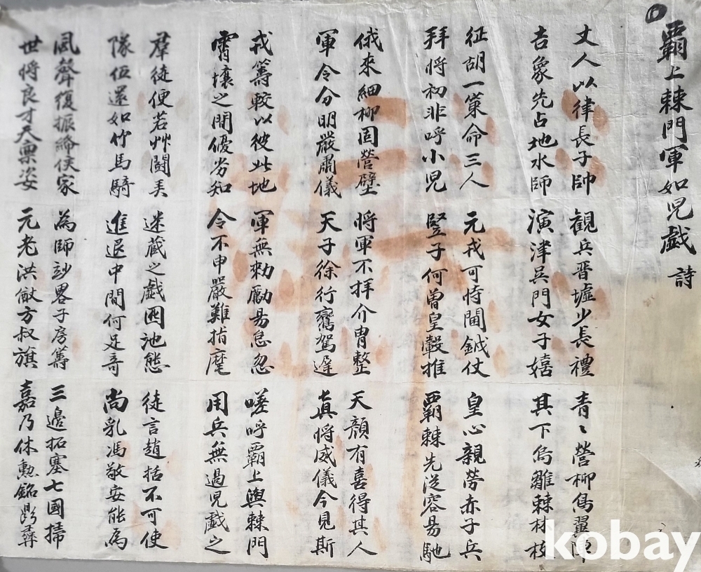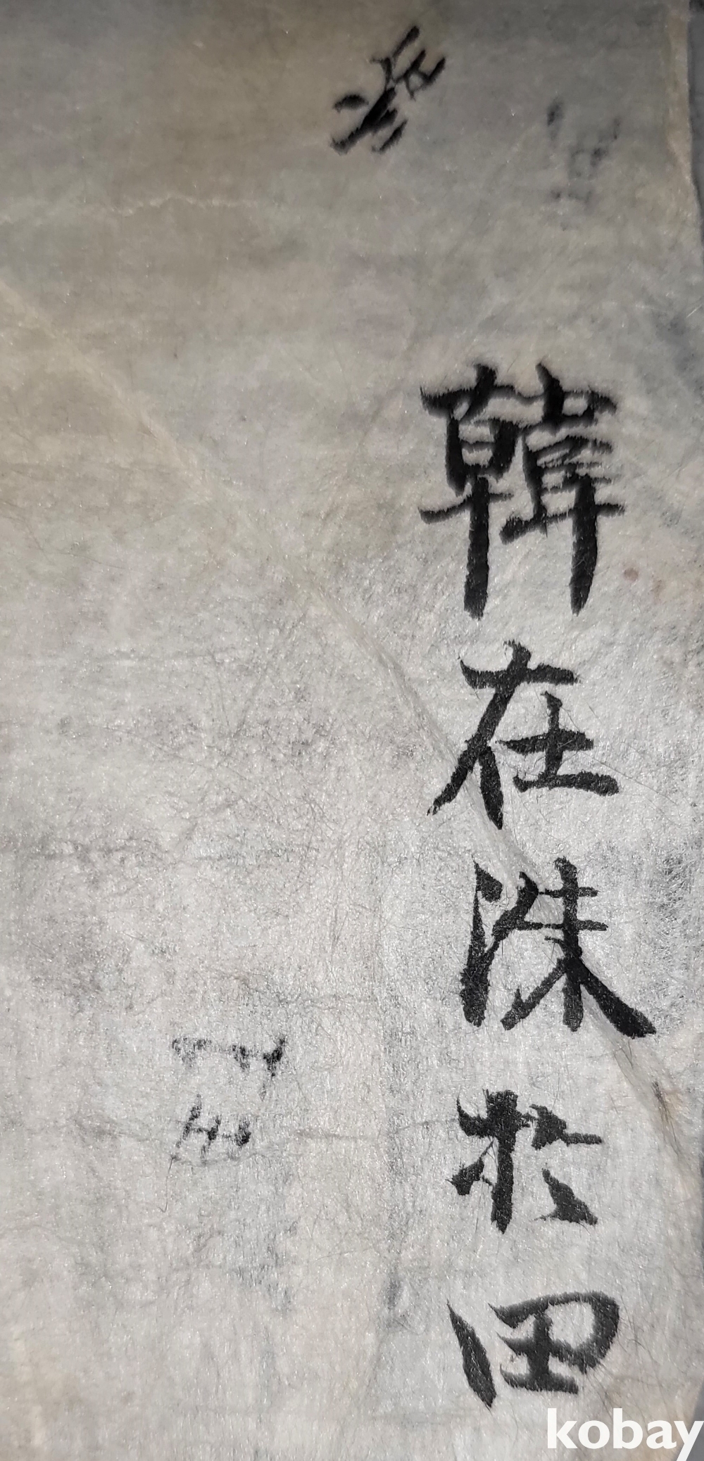 구한말 "한재수" 수결이 보이는 장지바닥에 시문(詩問)이 가득찬 서예품입니다,