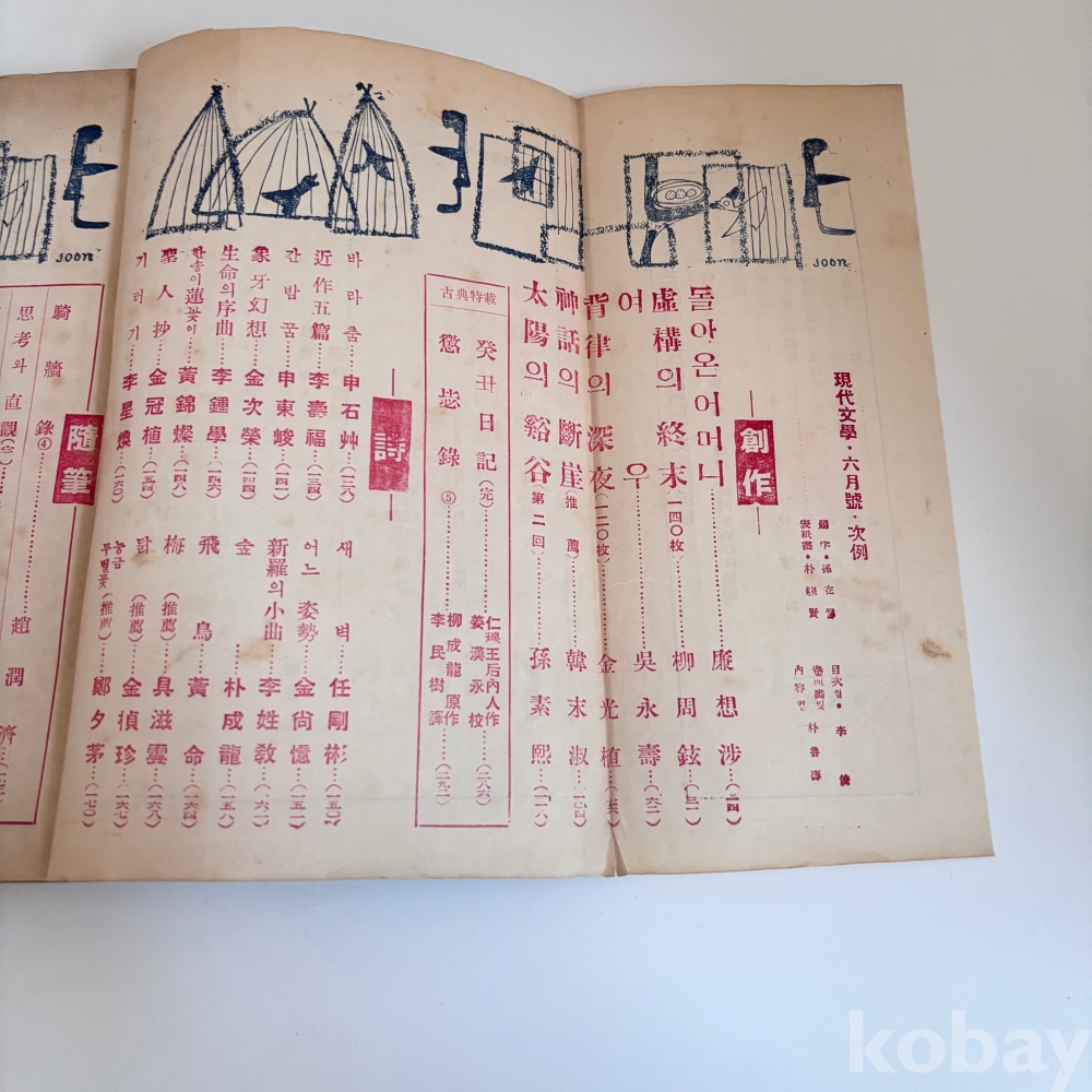 박래현 장정 현대문학 1957년 6월호 입니다.