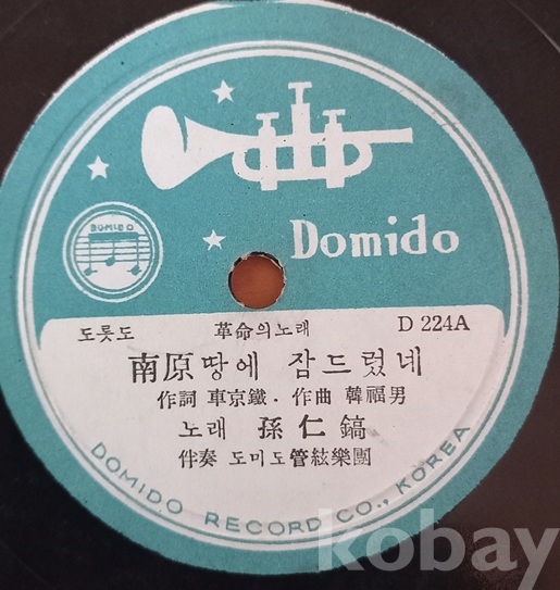 D 224 A (도롯도 革命의 노래) 南原땅에 잠드렀네(車京鐵 作詞,韓福男 作曲,孫仁鎬 노래).