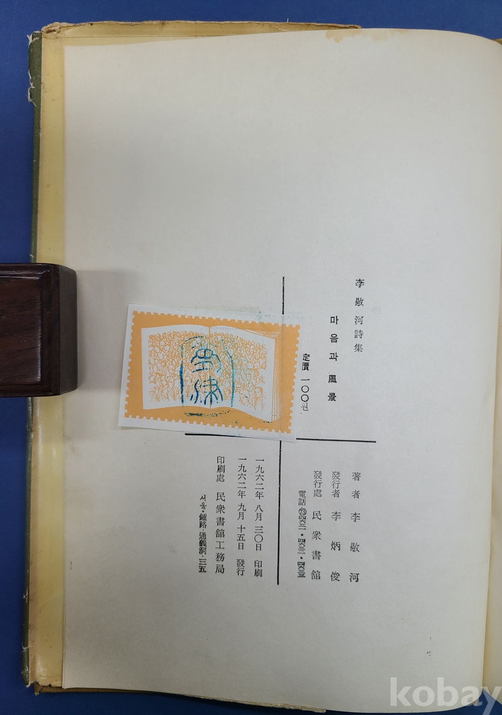 李揚河(이양하)詩集 [마음과 風景] 저자 이양하, 1962년9월15일, 민중서관, 145쪽