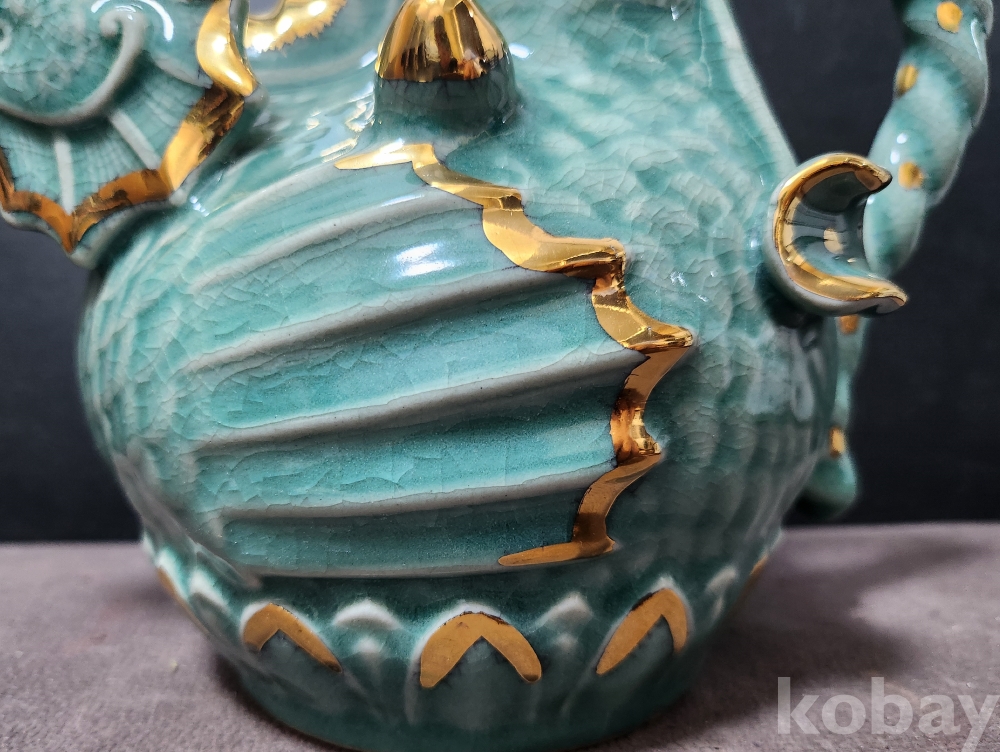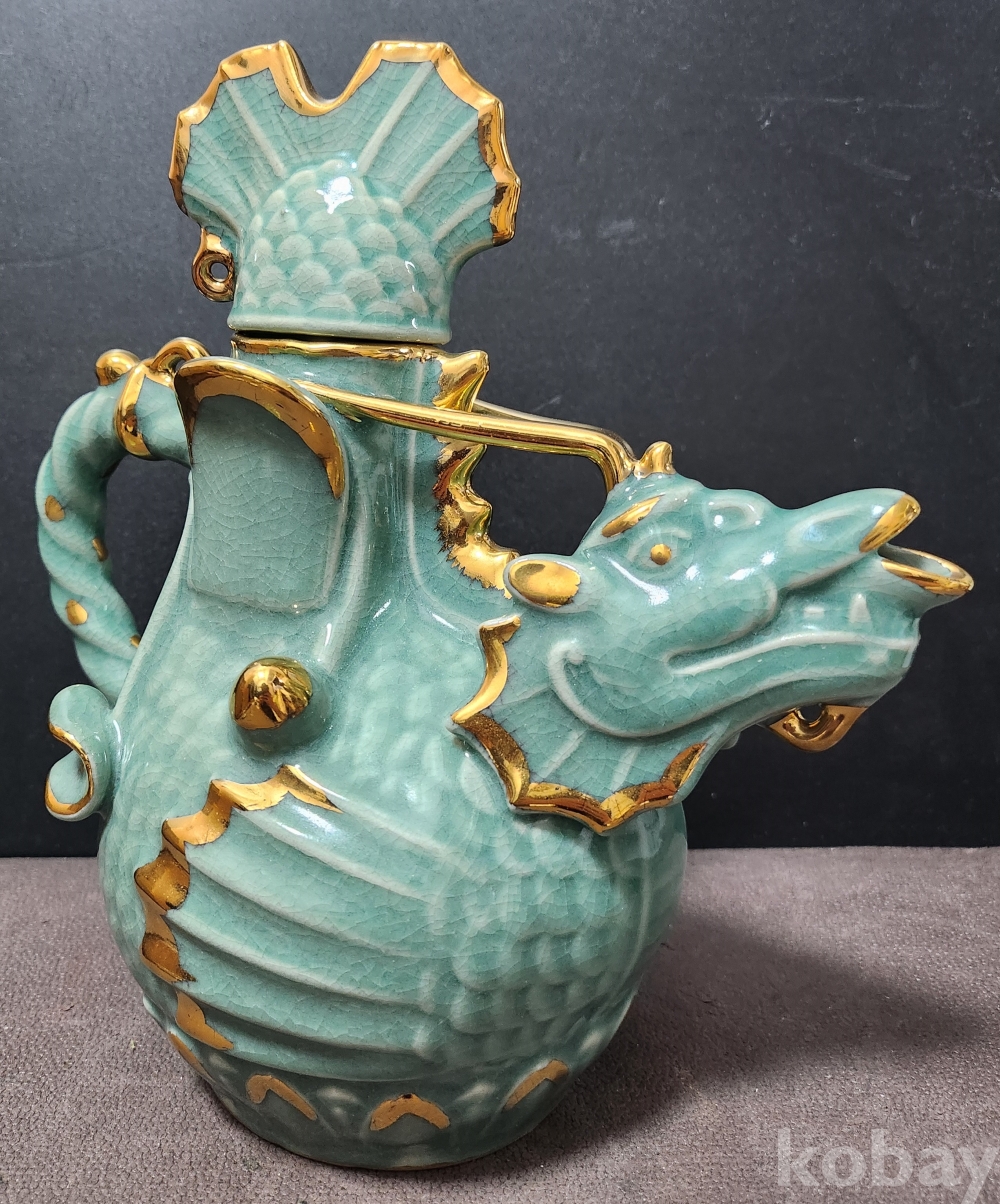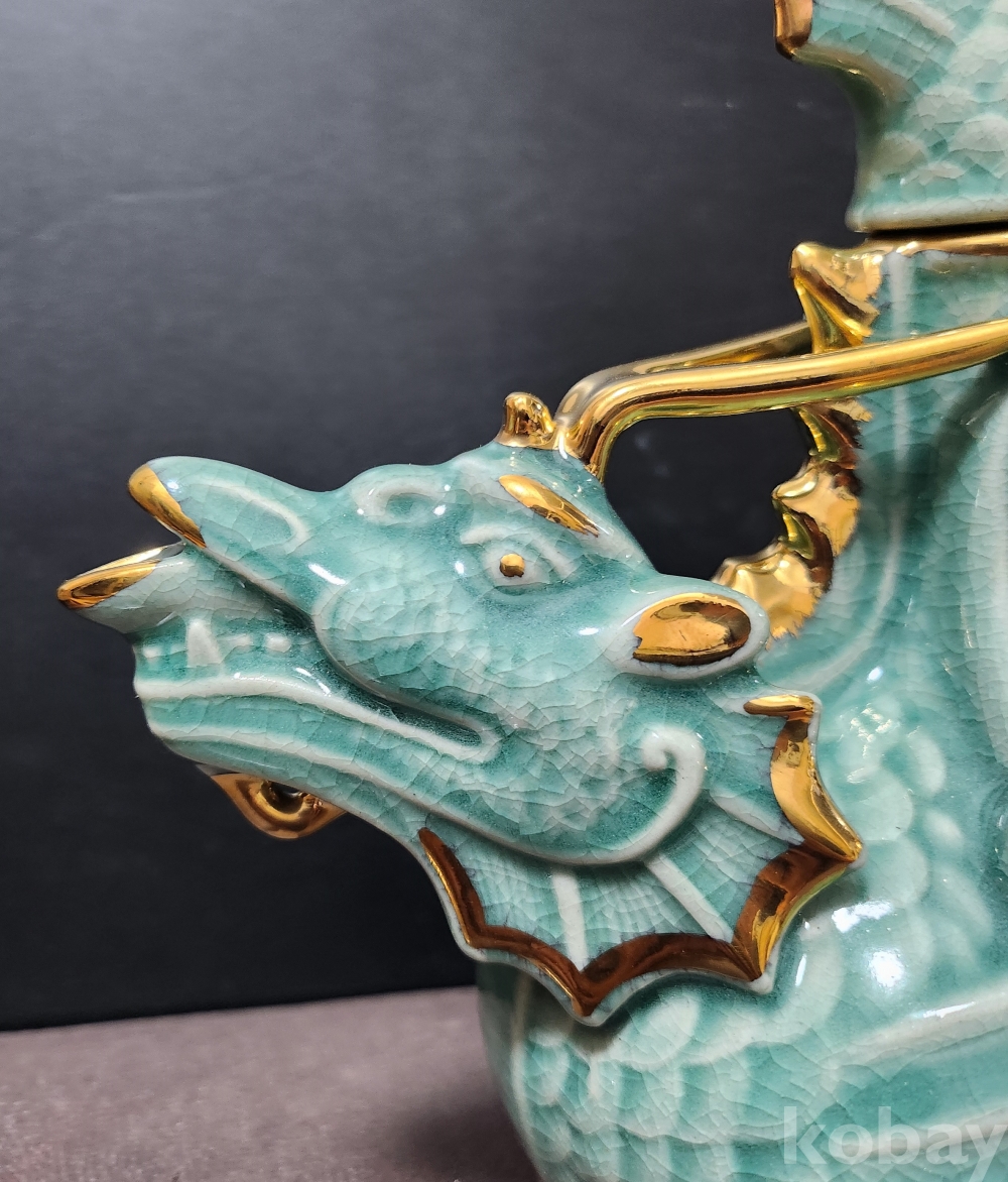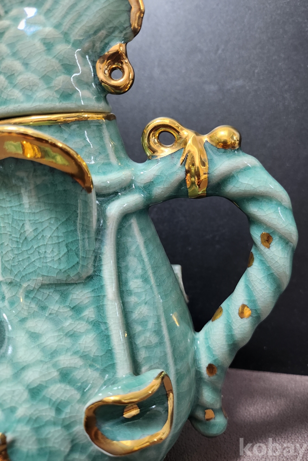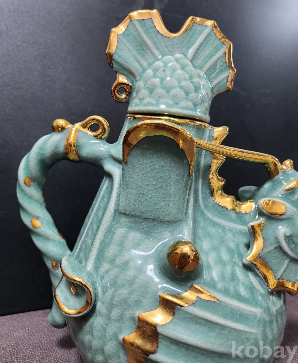 청자 금박 어룡형 주전자(靑磁 金箔 魚龍形 注子) < 도예가 전시회 출품 作品 >
