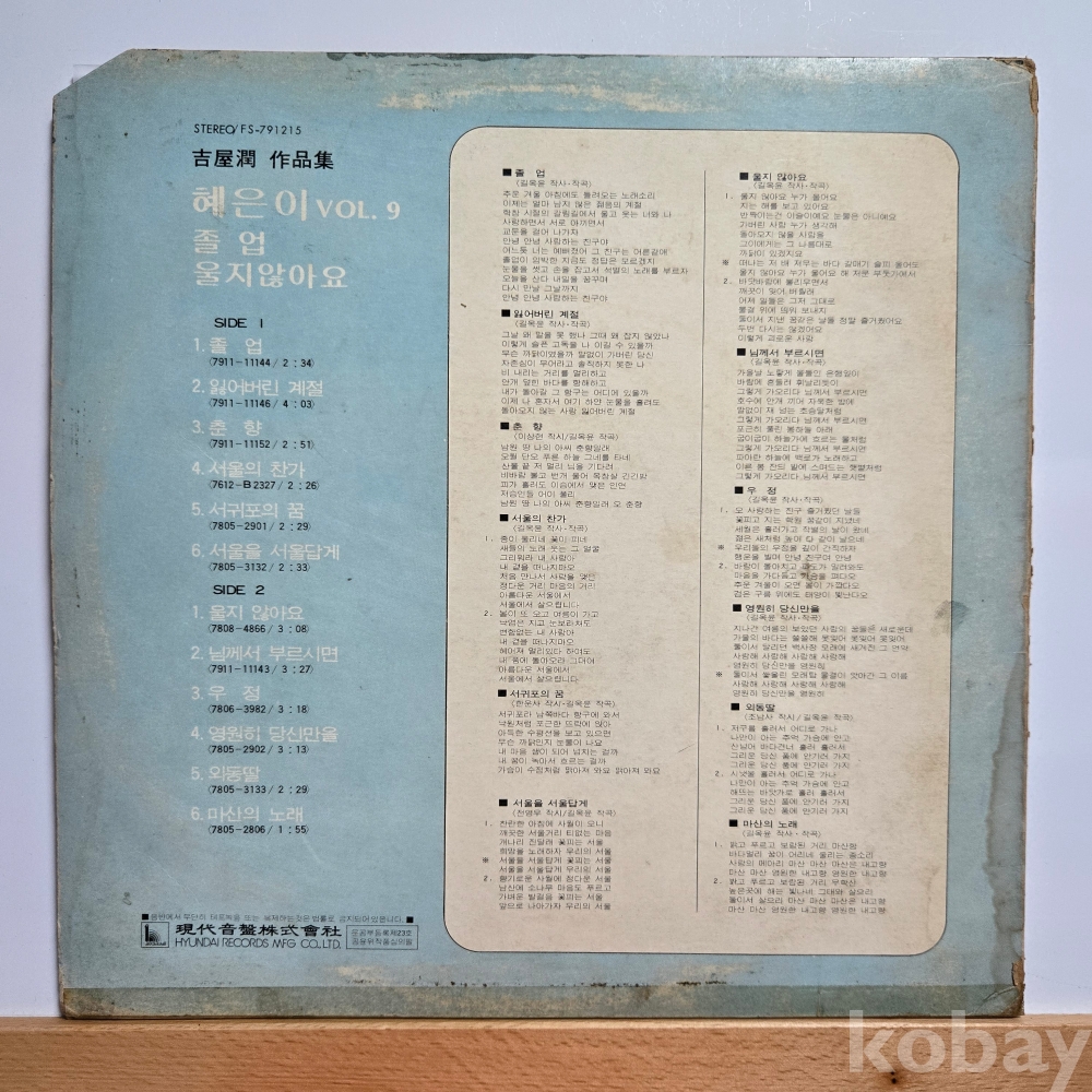 중고 LP인 관계로 취소나 반품도 불가합니다.