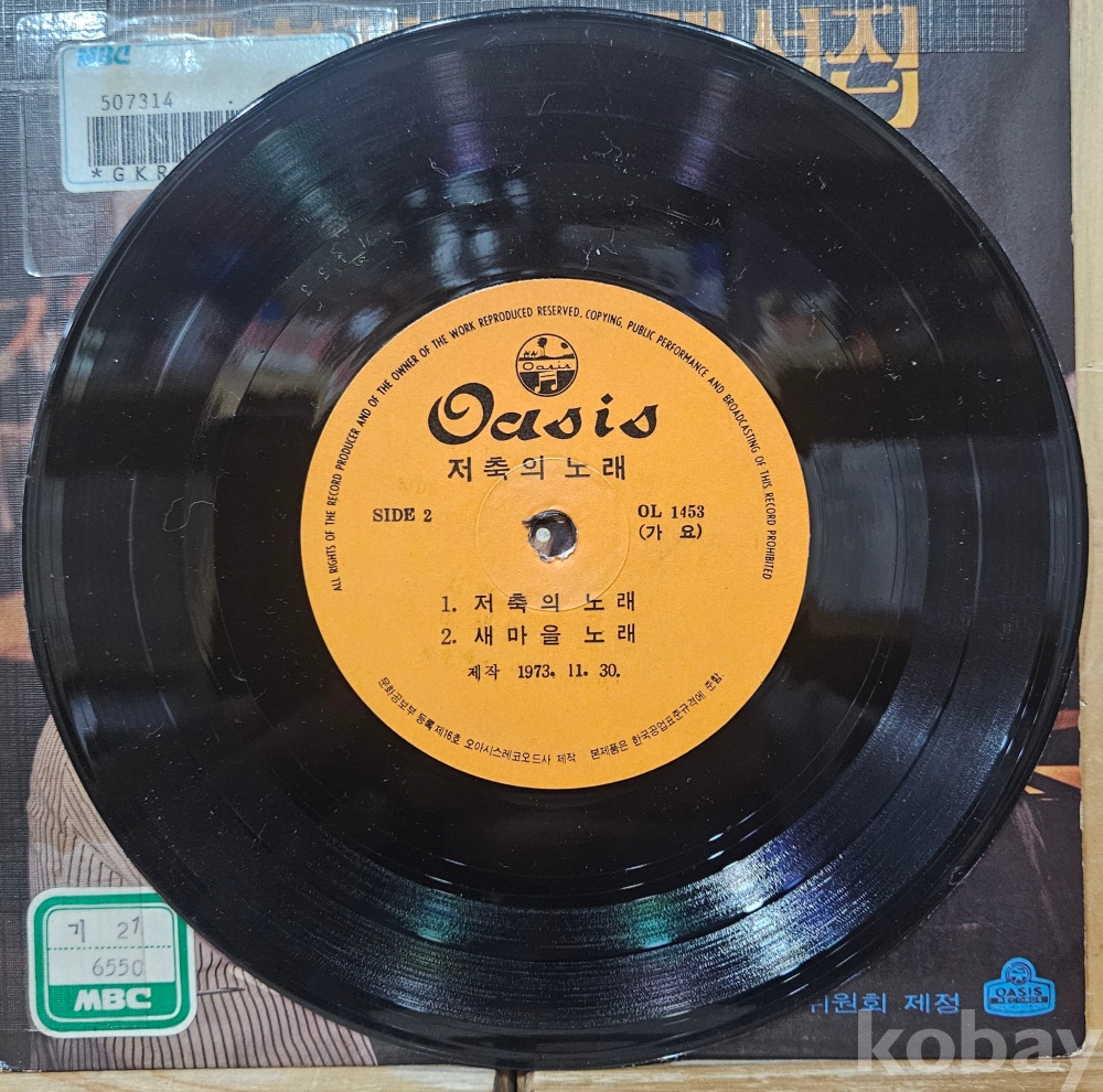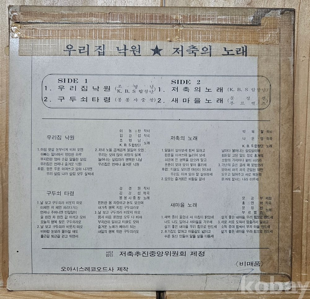 저축추진 중앙위원회에서 저축을 장려하기 위해서 발매된 초희귀 7인치 음반입니다.