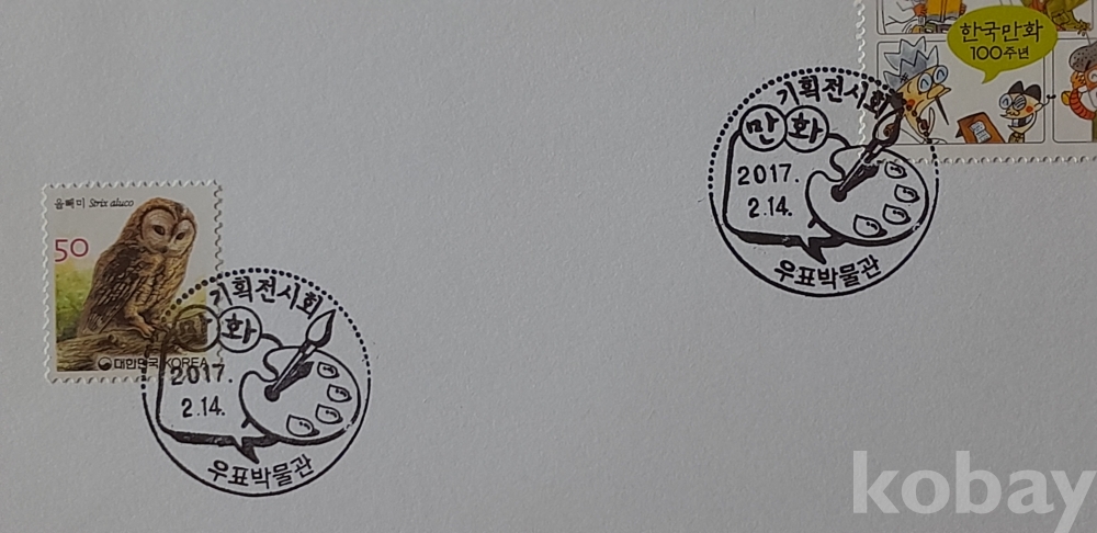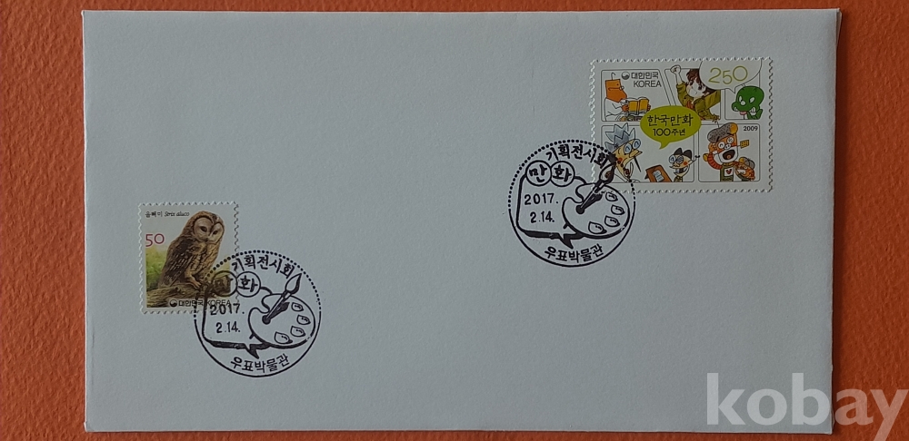 만화 100주년 기획전시회 우표박물관 소인 외 1종 초일봉피 입니다.
