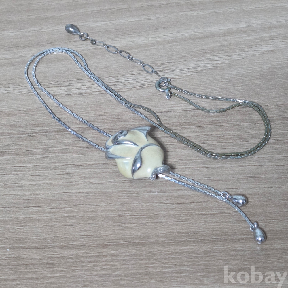 크림색 장미꽃 슬라이드 조절 목걸이