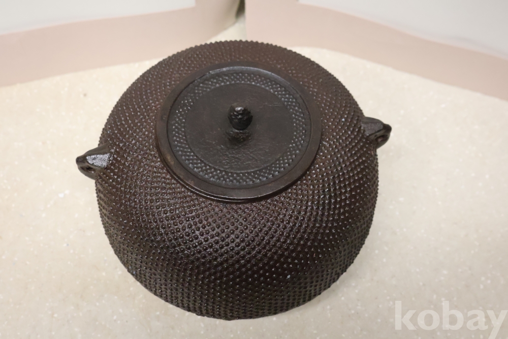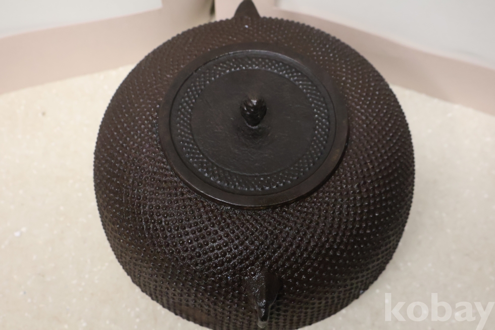 테츠빈 철 주전자 이며 돌기 문양을 가진 정성을 가진 묵직한 테츠빈 임니다 멋진 표현 디자인이 보기 좋읍니다