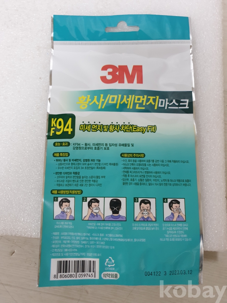 {천원경매} Y-4-0797 3M 황사 미세먼지 마스크 5개 (기한 지남)