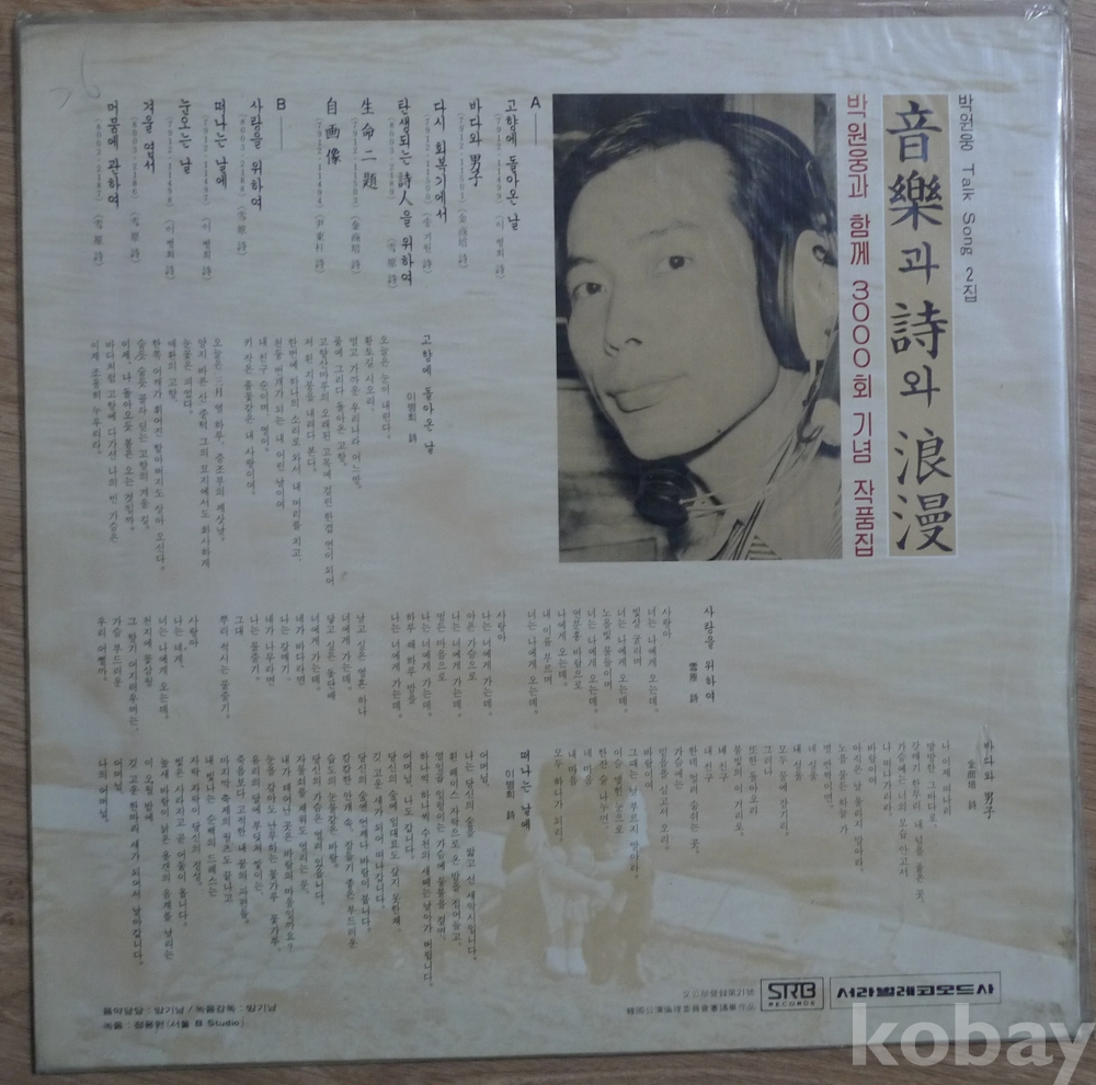 음악과 시와 낭만 " 박원웅과 함꼐 " 300회 기념 작품집 음반 LP