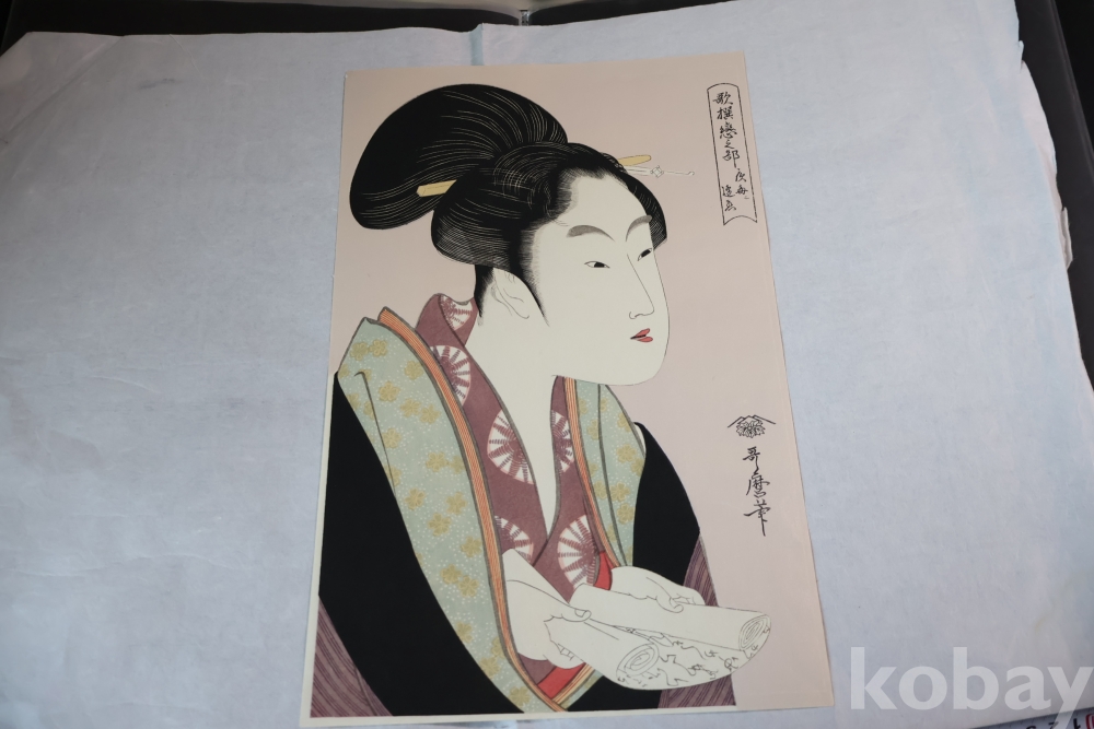 고급 우타마로 목판화 임니다 소화기에 복각된 당대의 명화 이며 아타치 판본 임니다 은마이카 처리 된 명품 명화 임니다