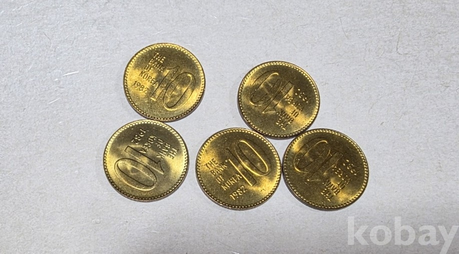 -대한민국 현행주화 1982년 10주 미사용 5개 입니다.