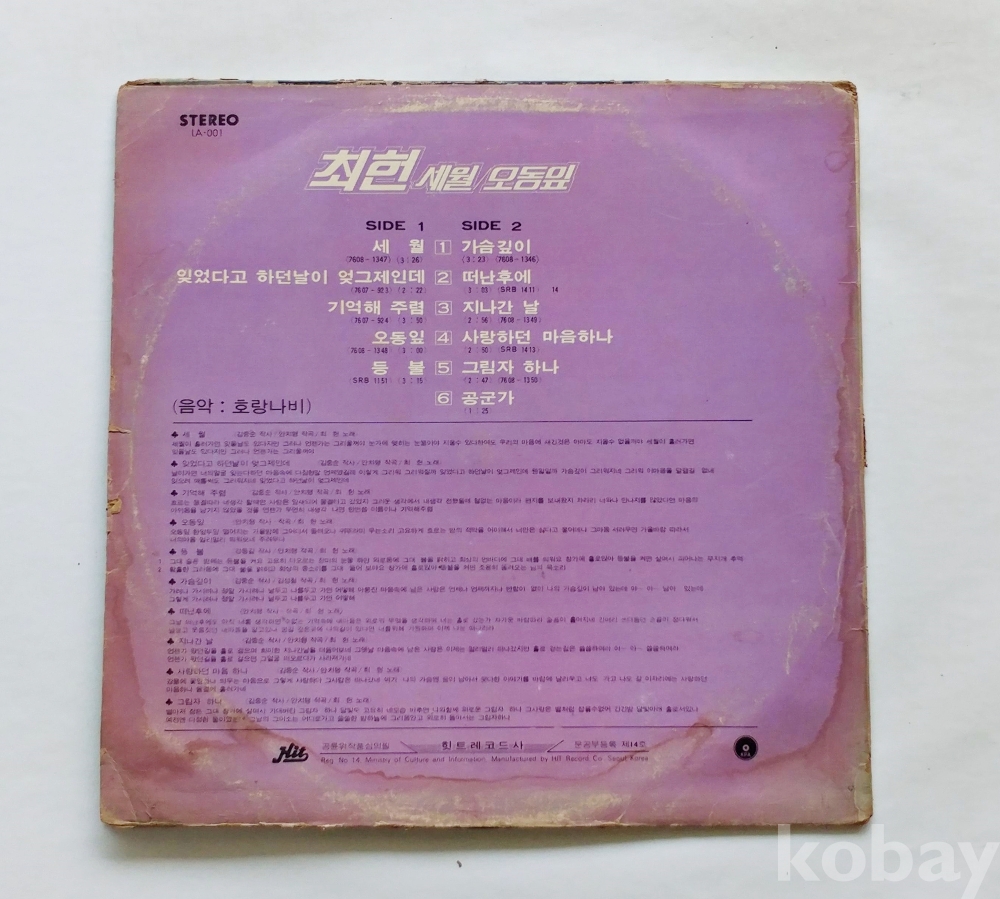 | 자켓상태 | EX : 약간의 마모, 모서리 찢김 존재 | 음반상태 | EX : 재생에 영향 없는 가벼운 기스 존재 | 발매정보 | 알수없음 | 가사지여부 | 무 |
