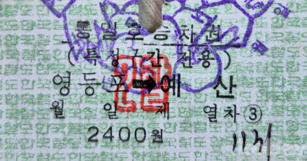 통일호 승차권 영등포-예산 특정구간 2할권입니다.