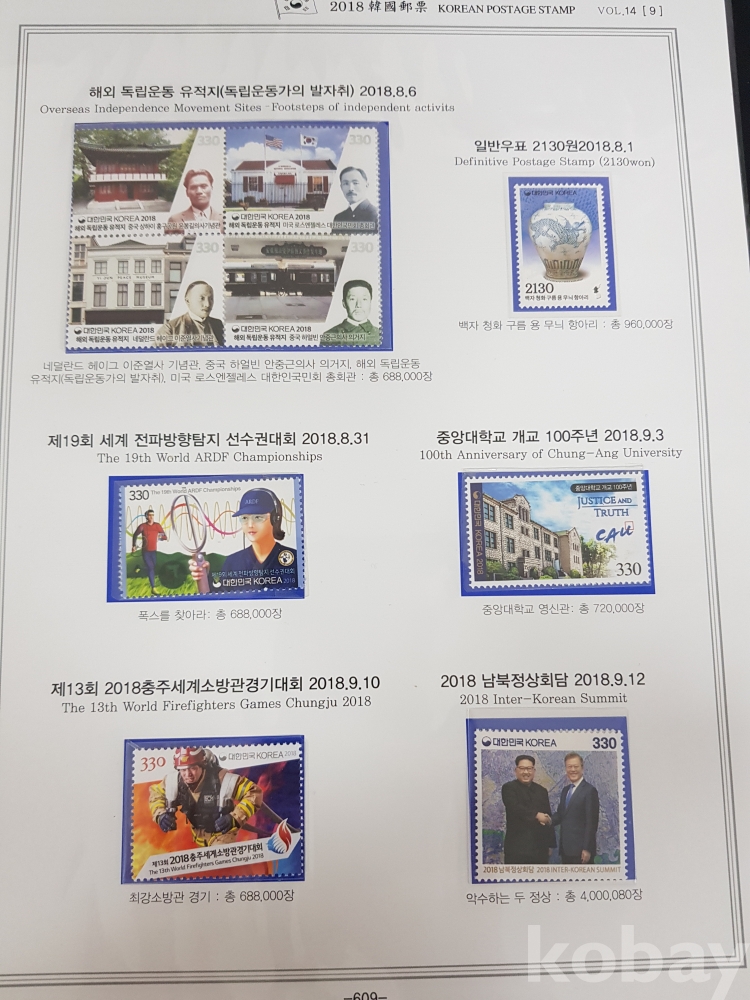 - 2018년~2021년 한국우표앨범 14번 우표책 앨범해체분 / 한국우표문화협회