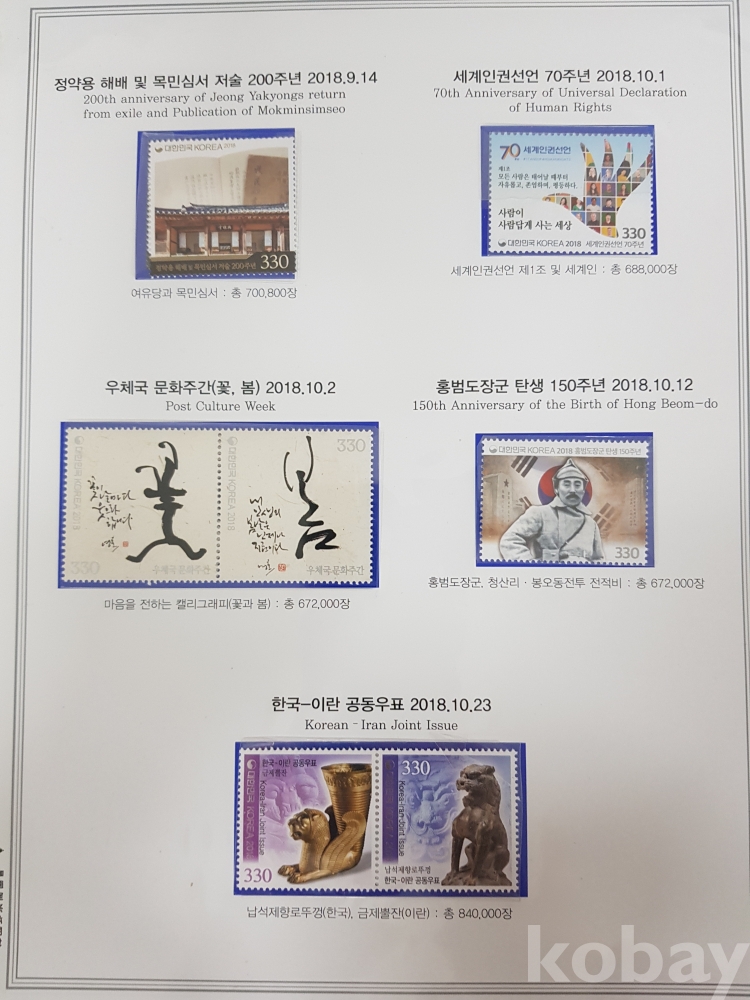 - 일부 미부착된 부분이 있을 수 있습니다. 이 경우 보유하고 계신 우표를 채워 넣어 수집하시면 더욱 완성도 있는 컬렉션을 만드실 수 있습니다.