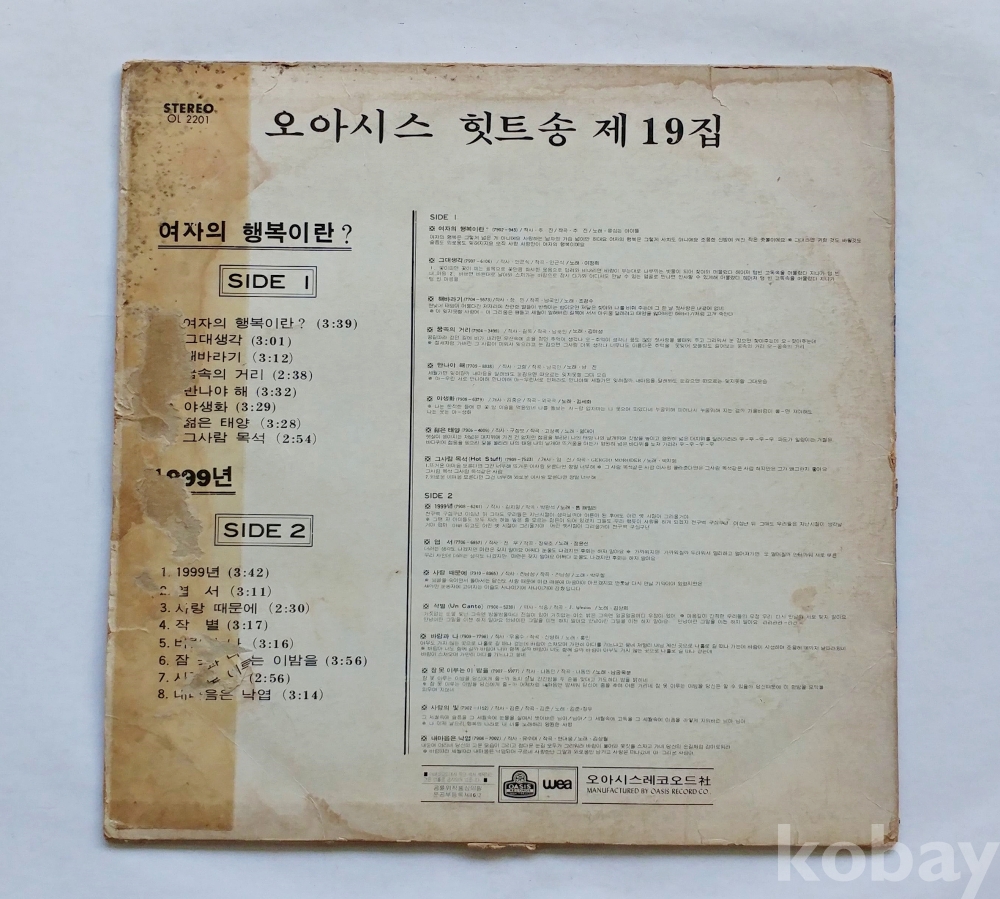 | 자켓상태 | VG : 주름, 접힘, 모서리 찢김 다수 | 음반상태 | EX : 재생에 영향 없는 가벼운 기스 존재 | 발매정보 | 알수없음 | 가사지여부 | 무 |