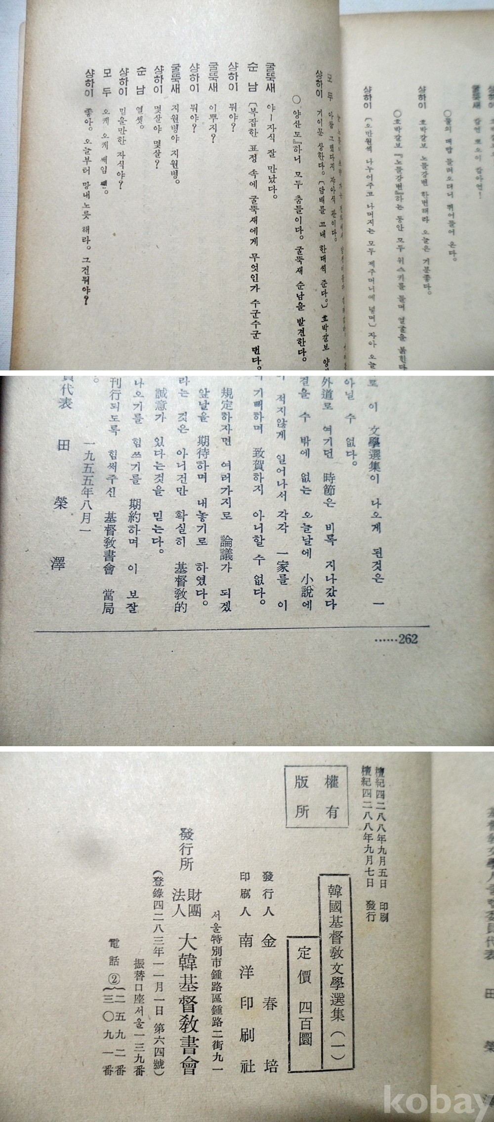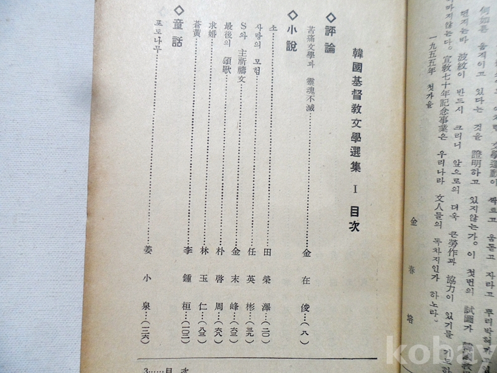 1955년 한국기독교문학선집~박두진 시인등 소설가 초판