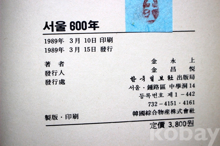 서울 600년 - 김영상 著 / 1989년. 한국일보사 발행