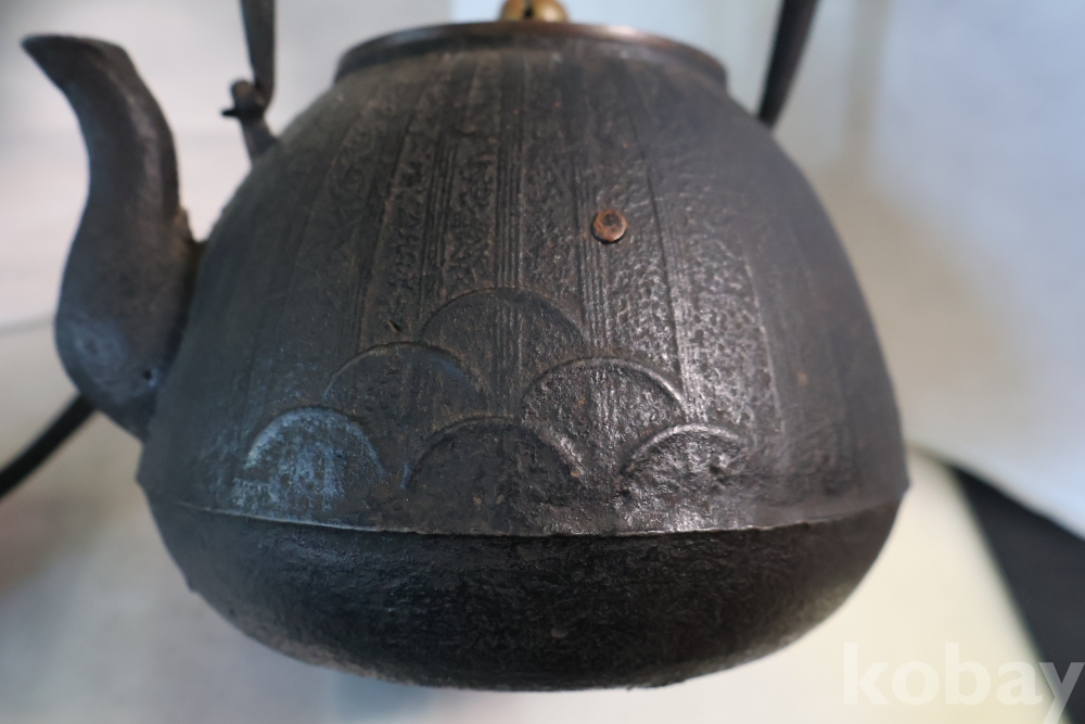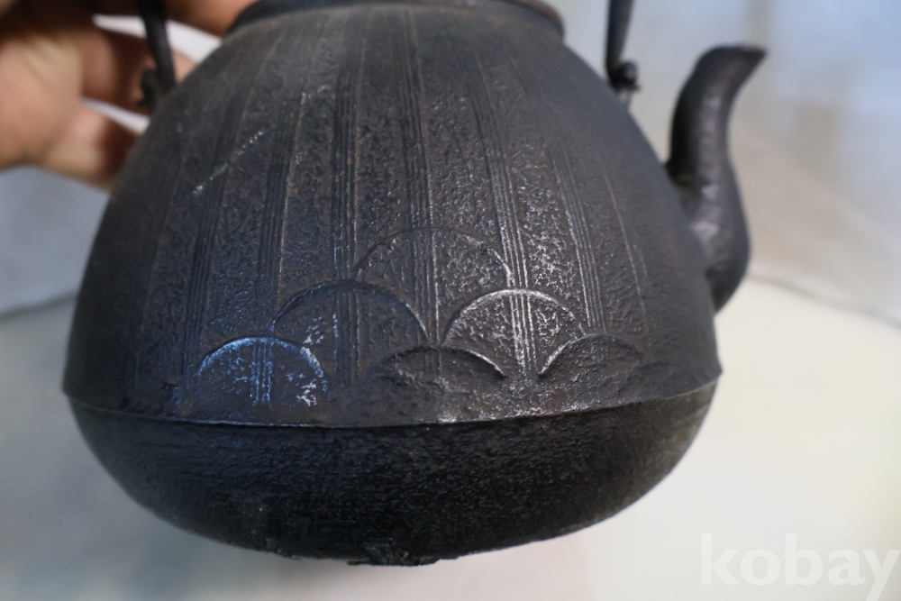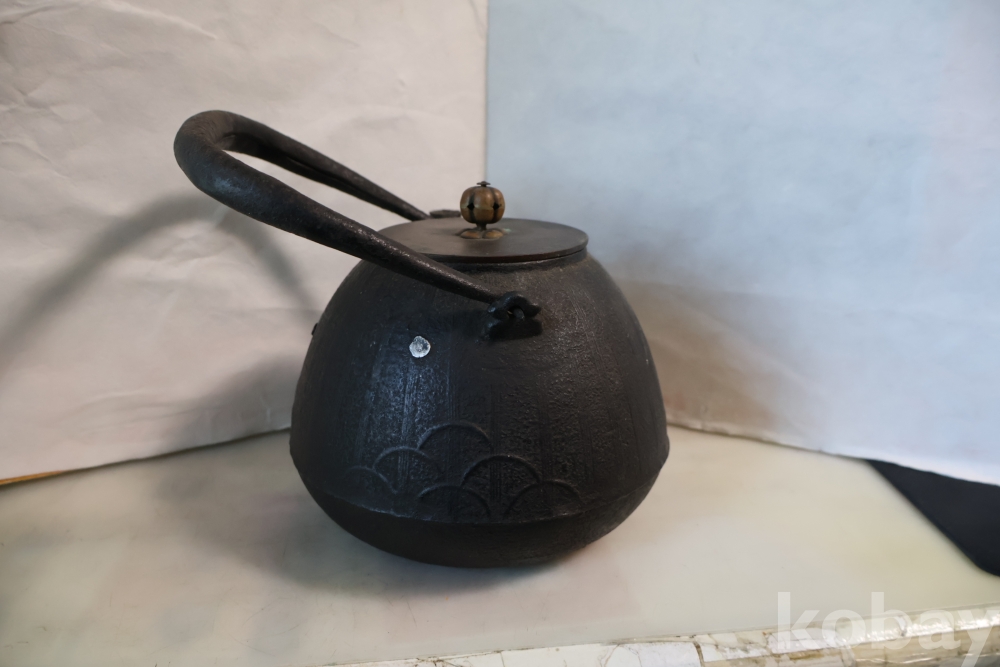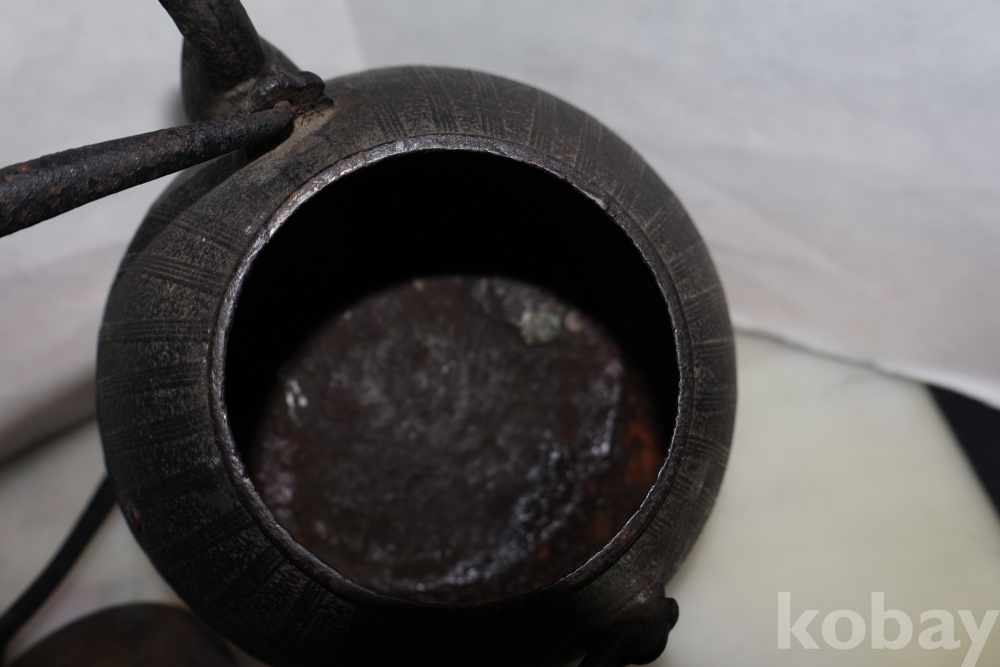 멋진 문양을 가진 철주전자 이며 뚜겅에 낙관을 가진 명품 임니다 달과 해로 보여지는 갈대?의 문양 등등 극히 귀한 명물 임니다