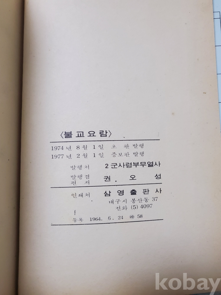 1. 불교요람, 권오성, 2권사령부무열사, 1977년, 179쪽, 저자 서명본, 상태 상, 사진 참조