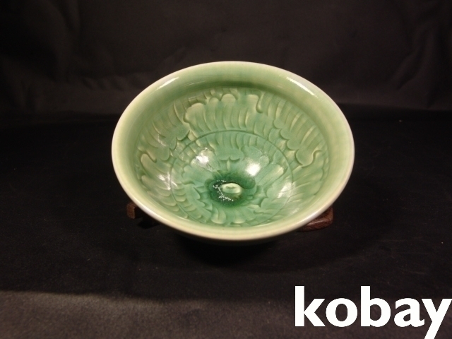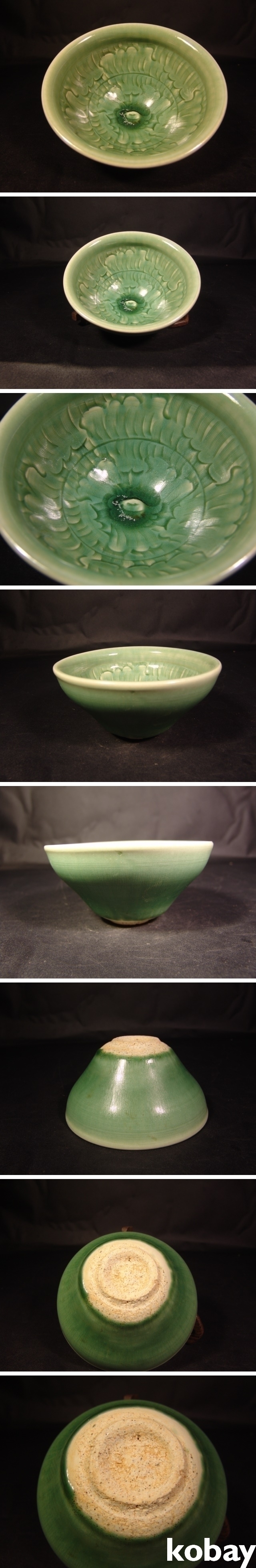 www3651 길주요(吉州窯) 녹유음각 화문다완(花紋茶碗)