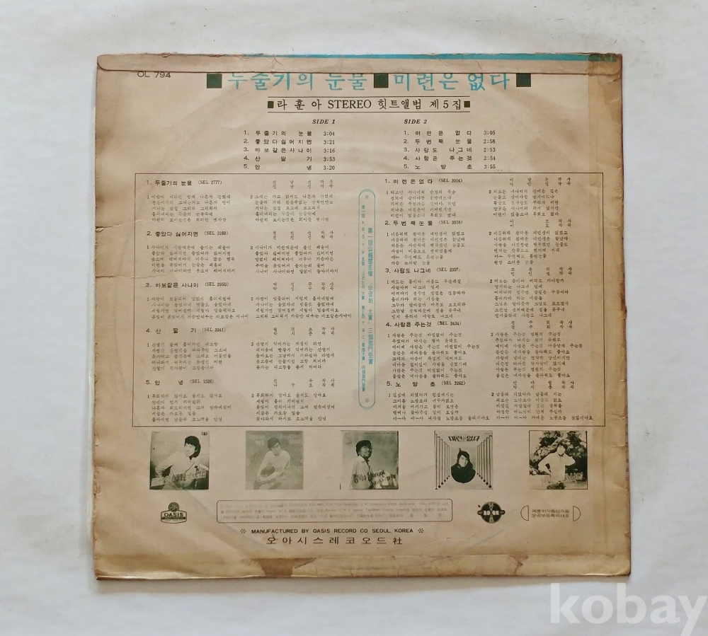 | 자켓상태 | VG : 주름, 접힘, 모서리 찢김 다수 | 음반상태 | EX : 재생에 영향 없는 가벼운 기스 존재 | 발매정보 | 알수없음 | 가사지여부 | 무 |