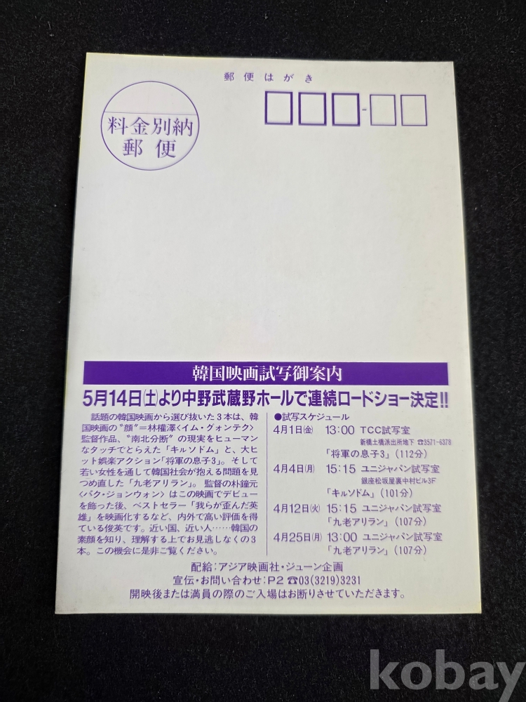 (((영화자료/엽서))) 오래전 일본발행 한국영화 김지미 주연 길소뜸 우편엽서