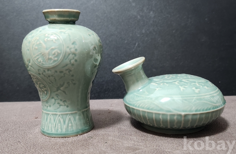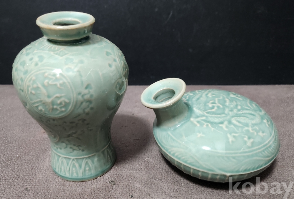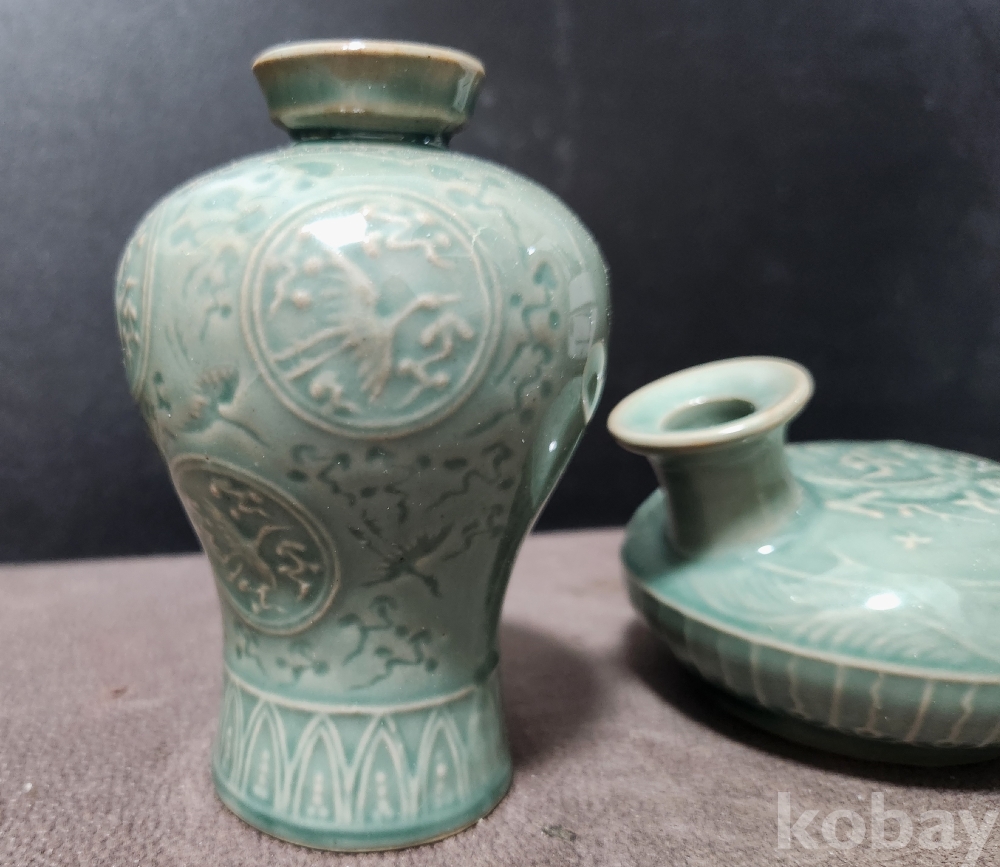 청자음각운학문 靑瓷陰刻雲鶴紋 < 2점 세트 作 >