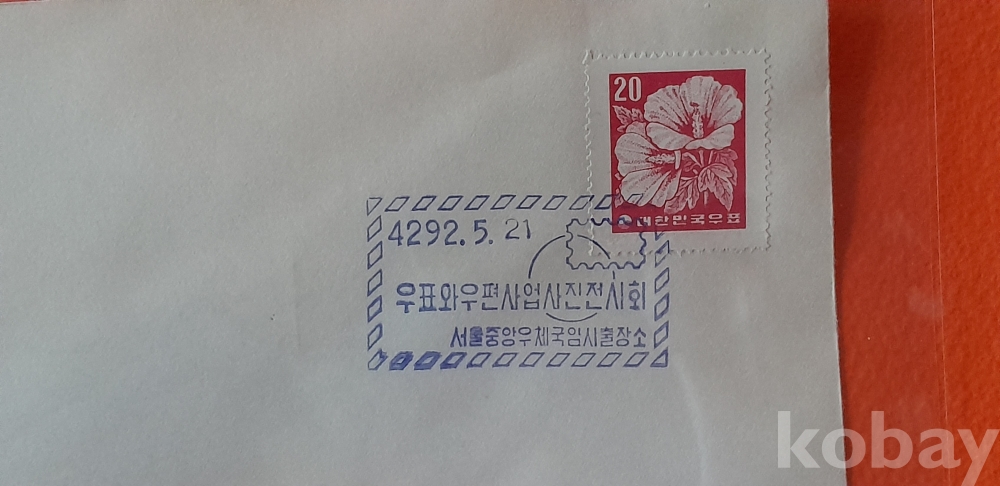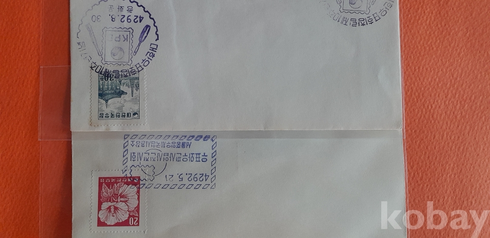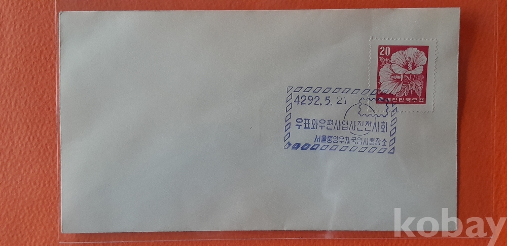 1959년 발행 20환 무궁화 보통 우표 첩부 등 2종 일반 봉피 입니다.